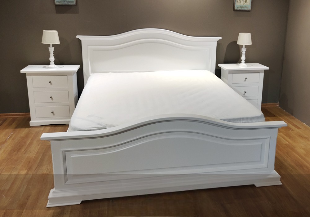 LETTO MATRIMONIALE SAGOMATO SHABBY CHIC BIANCO LEGNO MASSELLO