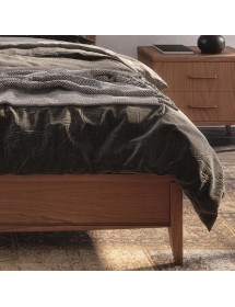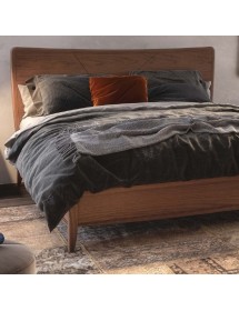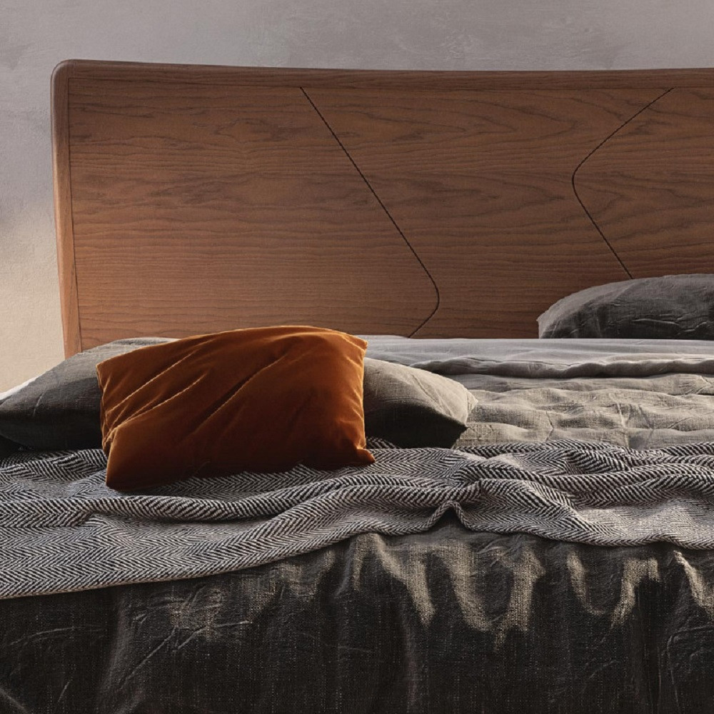 Letto moderno con giroletto e testata in legno. Piedini in legno massello. Testata semplice e lineare con incisione, minimalista ma arricchita dalla naturale venatura del legno di frassino. Letto perfetto per chi cerca la freschezza di uno stile semplice e vuole toccare con mano la qualità del vero legno.