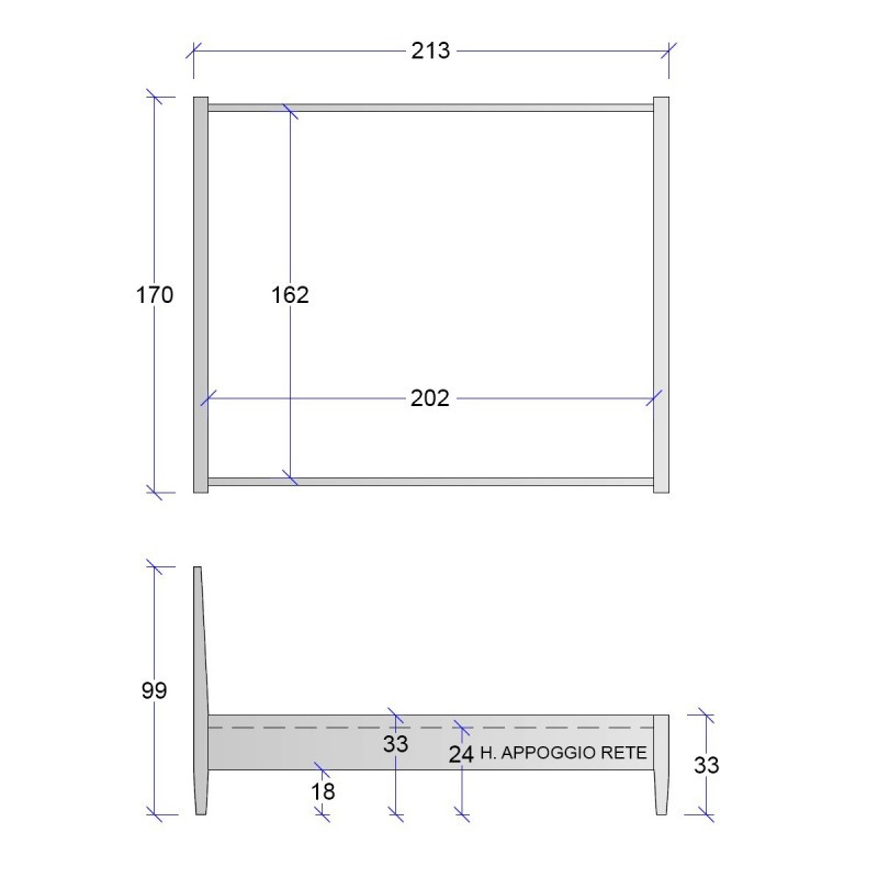- Letto predisposto per rete in appoggio da 160 x 200 (non inclusa)