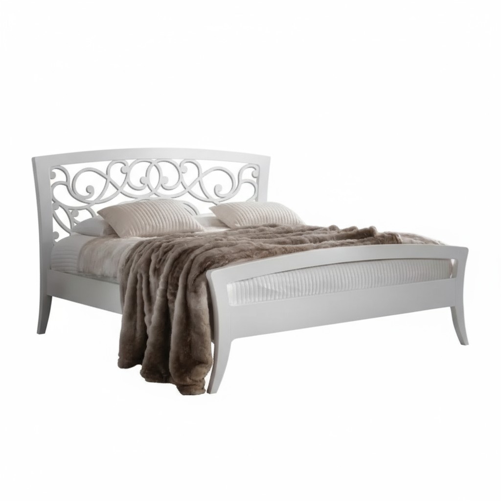LETTO ARTE POVERA TRAFORATO IN LEGNO BIANCO 184x210x120