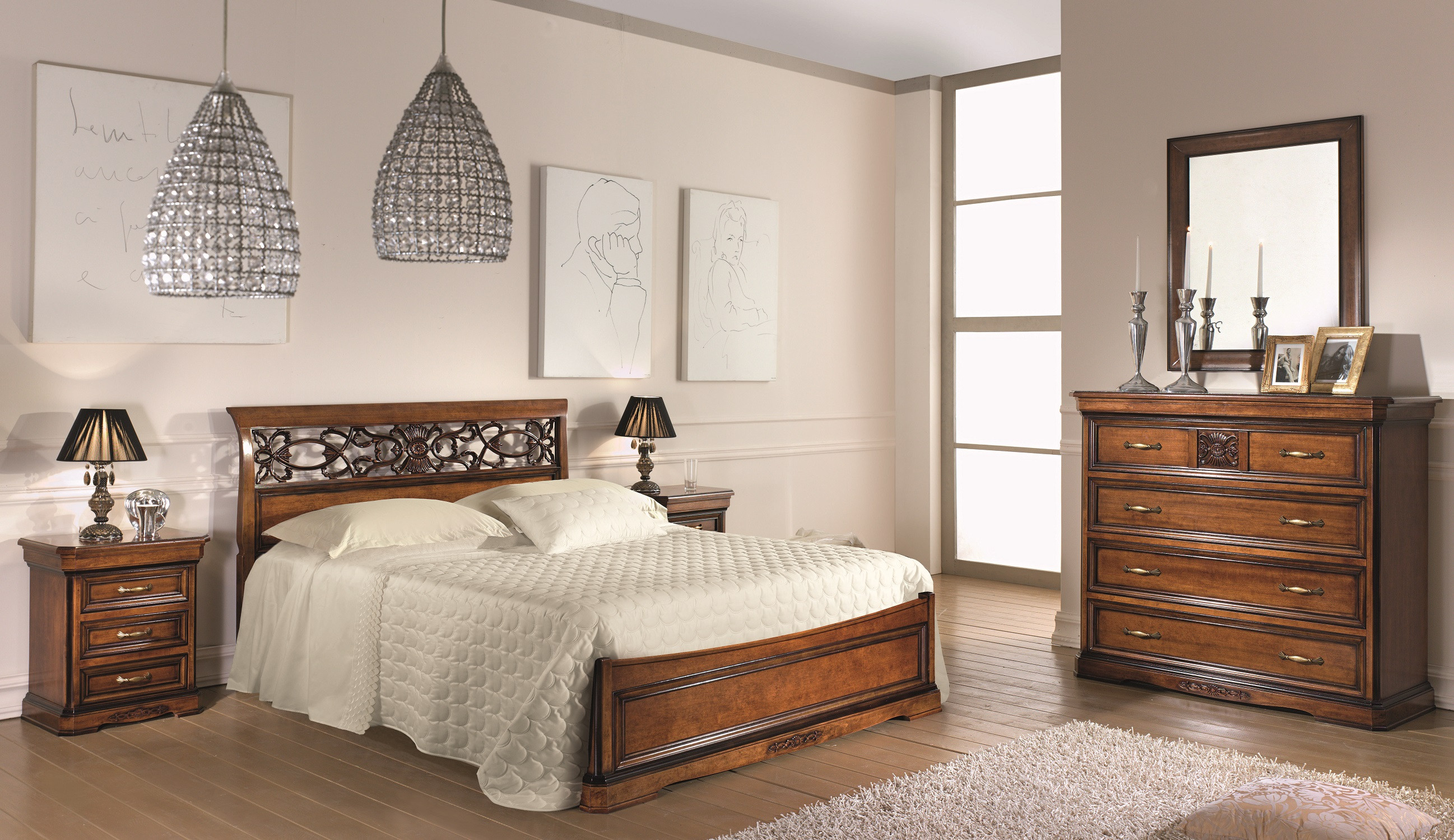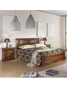 Letto matrimoniale in legno con testata traforata e pediera sagomata . Questa Versione ha il giroletto, solida e robusta. letto dalla linea elegante e di classe . La qualità dei materiali nella realizzazione di questo letto ne garantisce la lunga durata nel tempo.