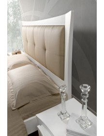 Linee pulite, dettagli eleganti e materiali di qualità si incontrano in questo letto matrimoniale con testata in ecopelle, una scelta raffinata per arredare la zona notte con gusto contemporaneo. La struttura in legno massello di frassino laccato bianco dona luminosità e leggerezza all’ambiente, mentre la testiera imbottita rivestita in ecopelle beige aggiunge un tocco di comfort ed eleganza.