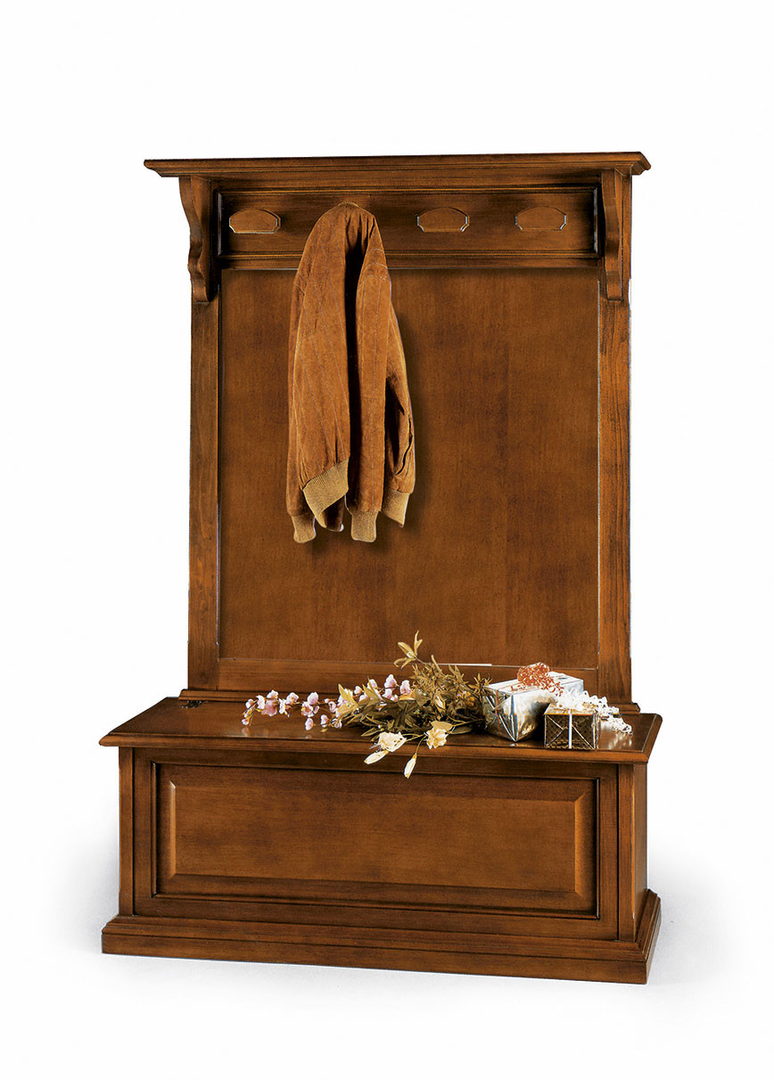 Attaccapanni con pannello in legno da appoggio su cassapanca