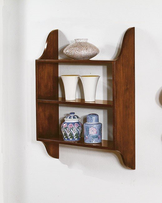 Pensile con tre ripiani fissi. I fianchi sagomati abbelliscono e rendono leggera la piattaia pensile. Le forme semplici e rigorose di questo mobile ne permettono l'inserimento in arredamenti dal gusto country o classico.