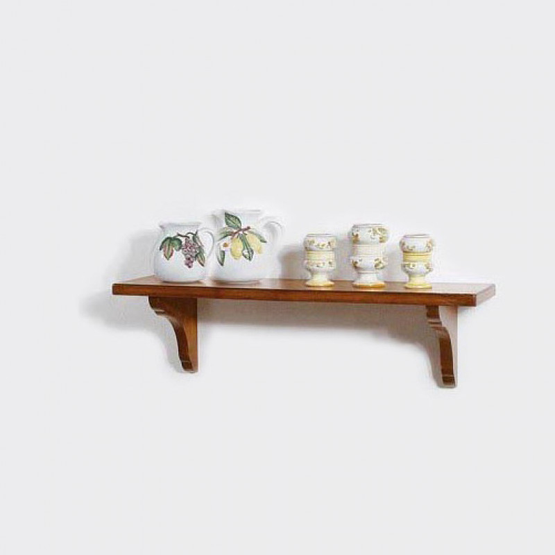mensola in legno massello sostenuto da due servetti sagomati e smontabili. Le forme semplici e rigorose di questo complemento ne permettono l'inserimento in arredamenti dal gusto country o classico.
