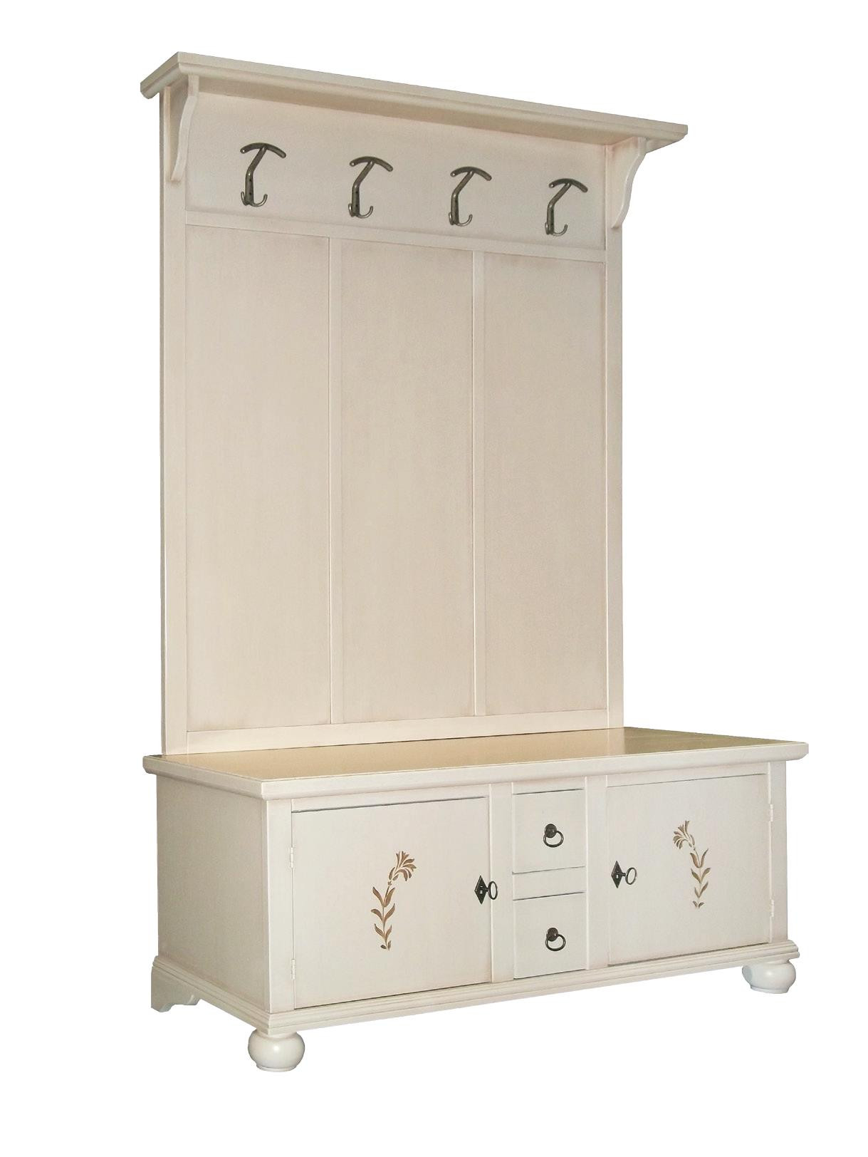 ATTACCAPANNI CASSAPANCA CLASSICA IN LEGNO AVORIO CON DECORI L.121 x P.45 H.190