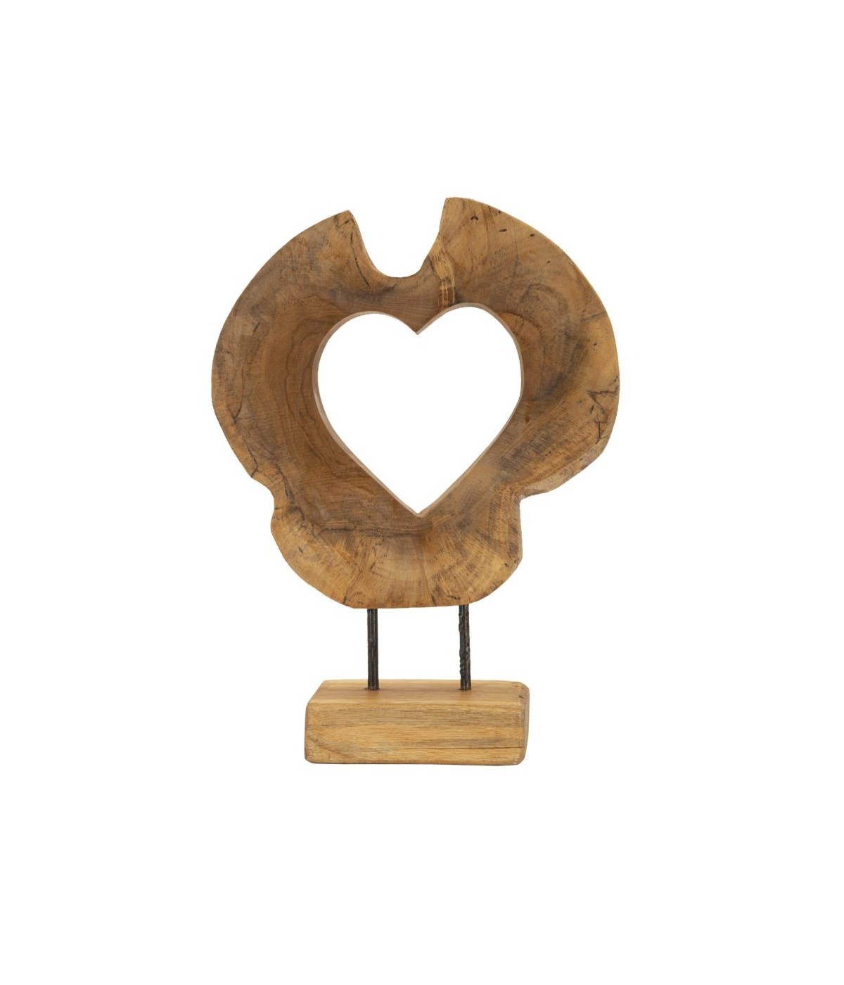 Scultura in teak riciclato, dalle forme irregolari e con un'elegante apertura a cuore, emana una calda sensazione di rinascita e amore. Ogni dettaglio, realizzato a mano, racconta una storia di bellezza imperfetta e autenticità.