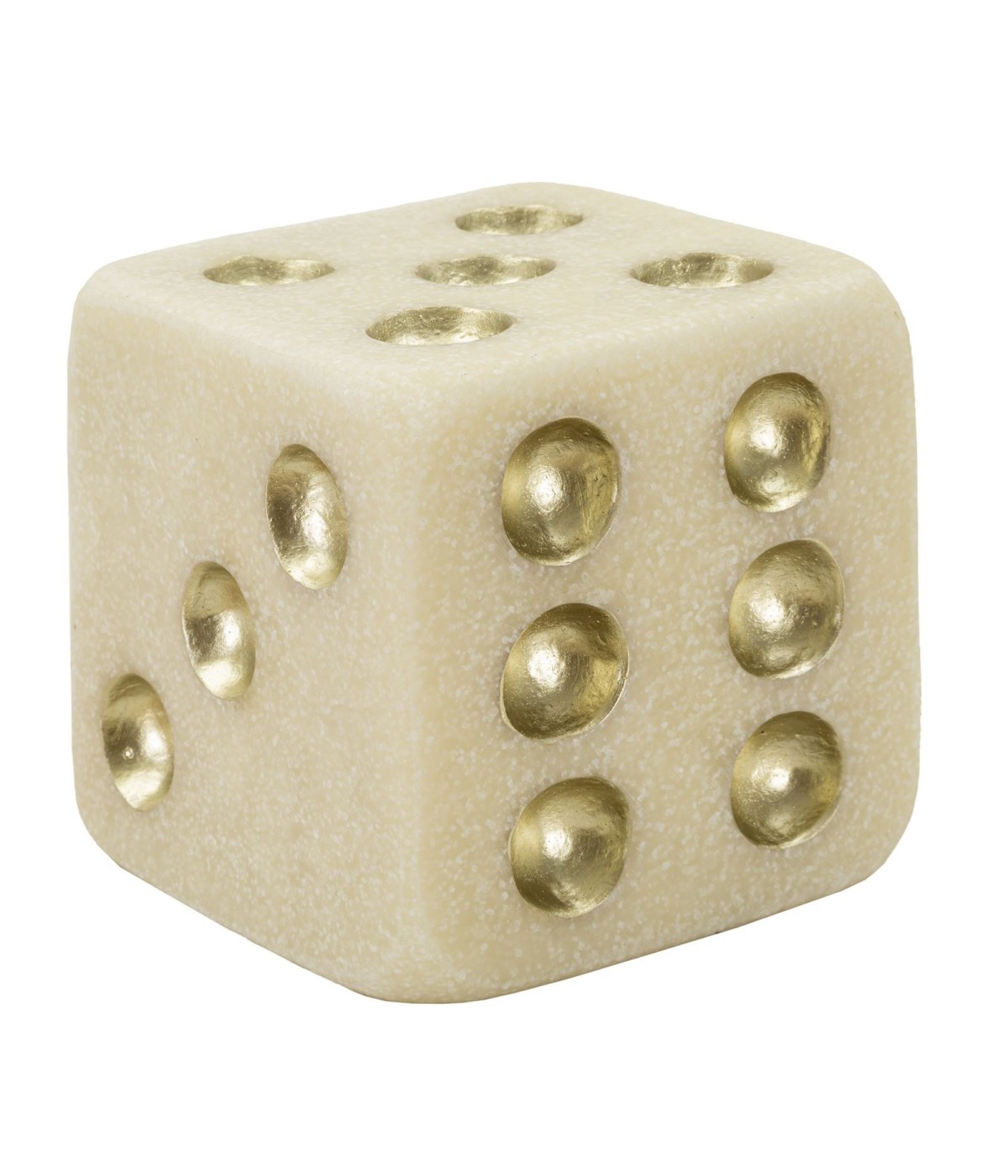 Dado elegante dai toni chiari con punti in oro. Perfetto per giochi da tavolo o collezioni. Design raffinato e moderno.