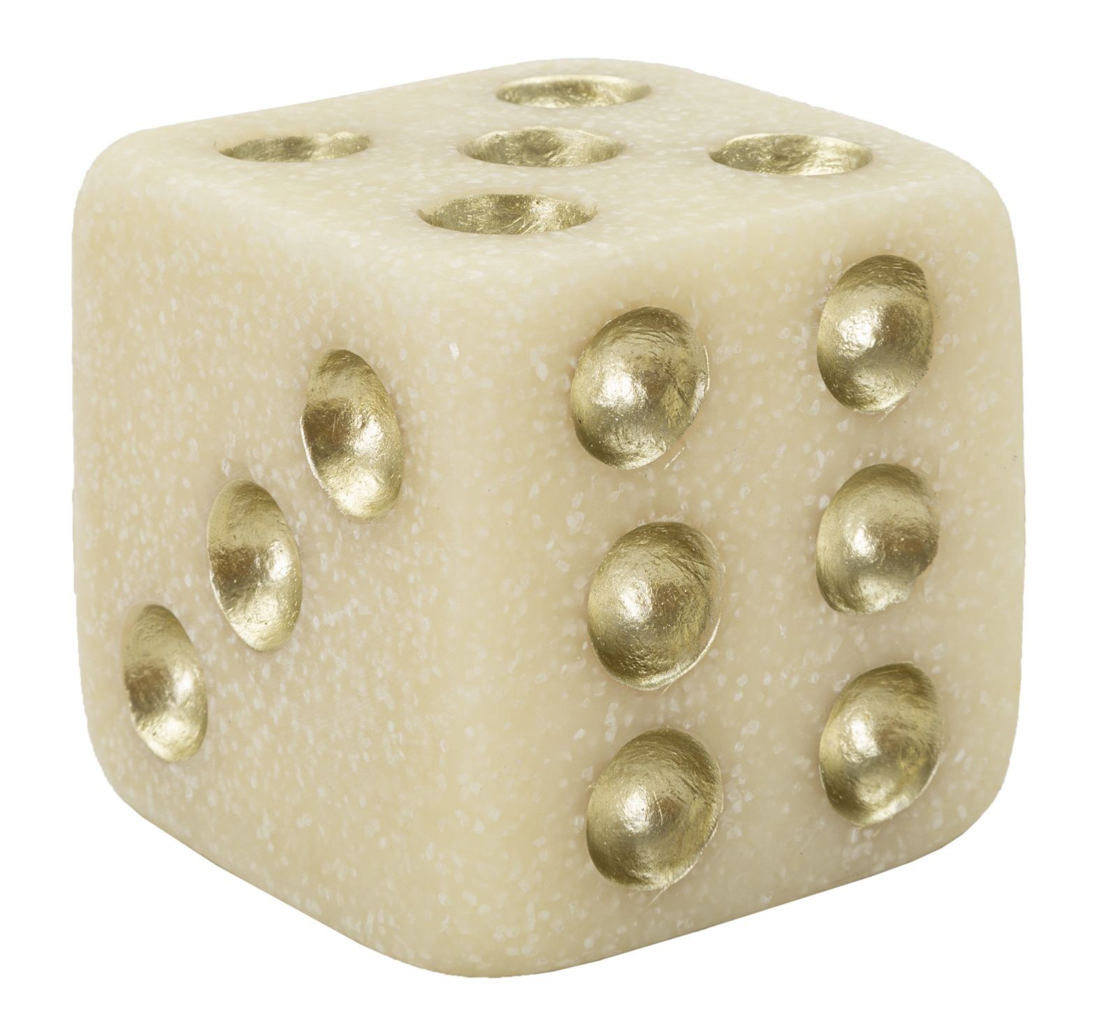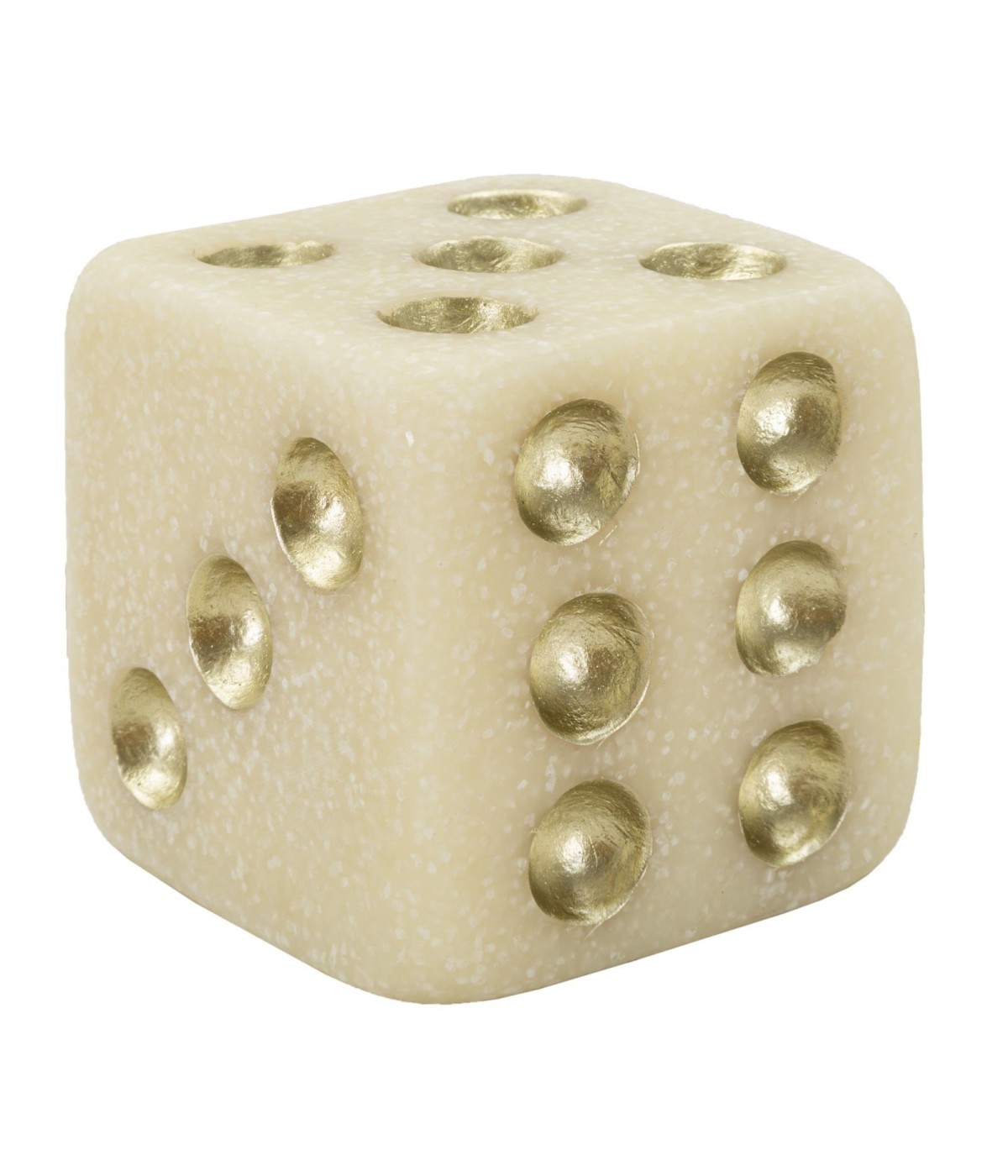 Dado elegante dai toni chiari con punti in oro. Perfetto per giochi da tavolo o collezioni. Design raffinato e moderno.