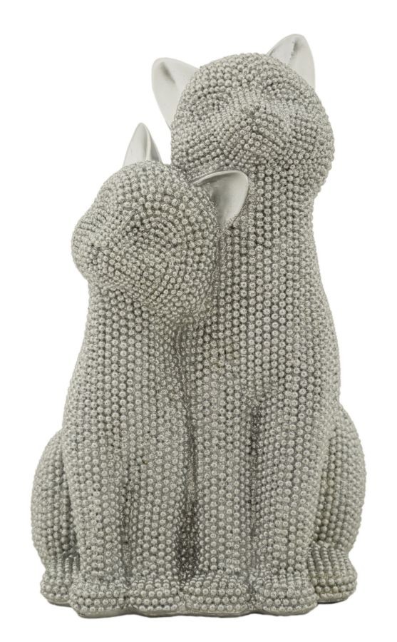 Statua coppia di gatti accoccolati con brillanti incastonati, perfetta per decorare con stile e amore gli ambienti domestici.