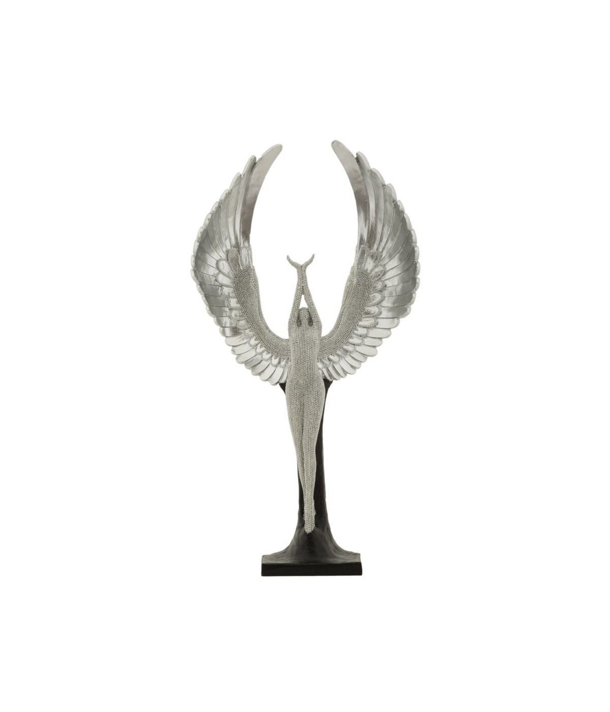 Statuetta d'argento con ali spiegate: incanta con grazia e dinamismo, riflettendo l'eleganza dell'arte antica.