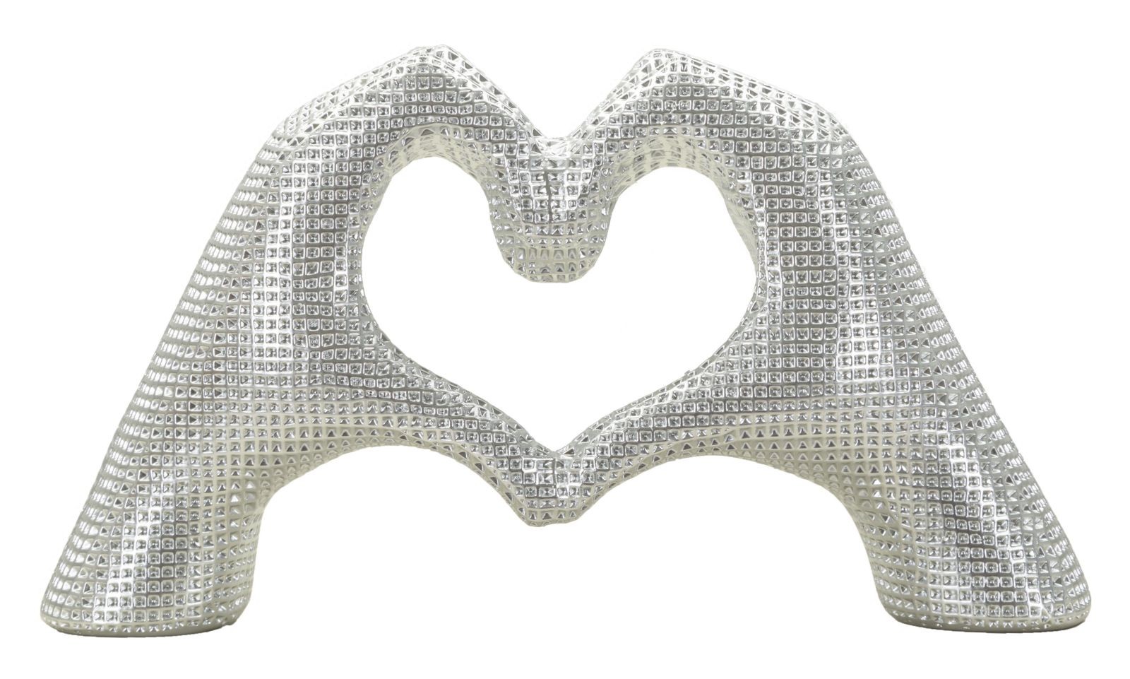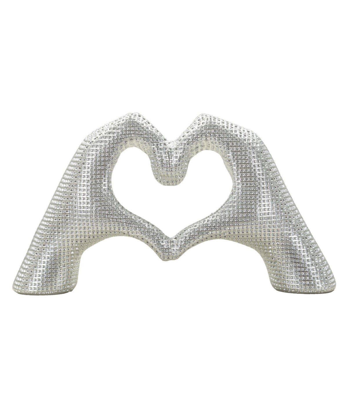 La Scultura Lover Silver simboleggia amore e connessione con eleganza. Le mani intrecciate formano un cuore, mentre il colore argento dona luminosità e raffinatezza, ideale per ambienti moderni e sofisticati.