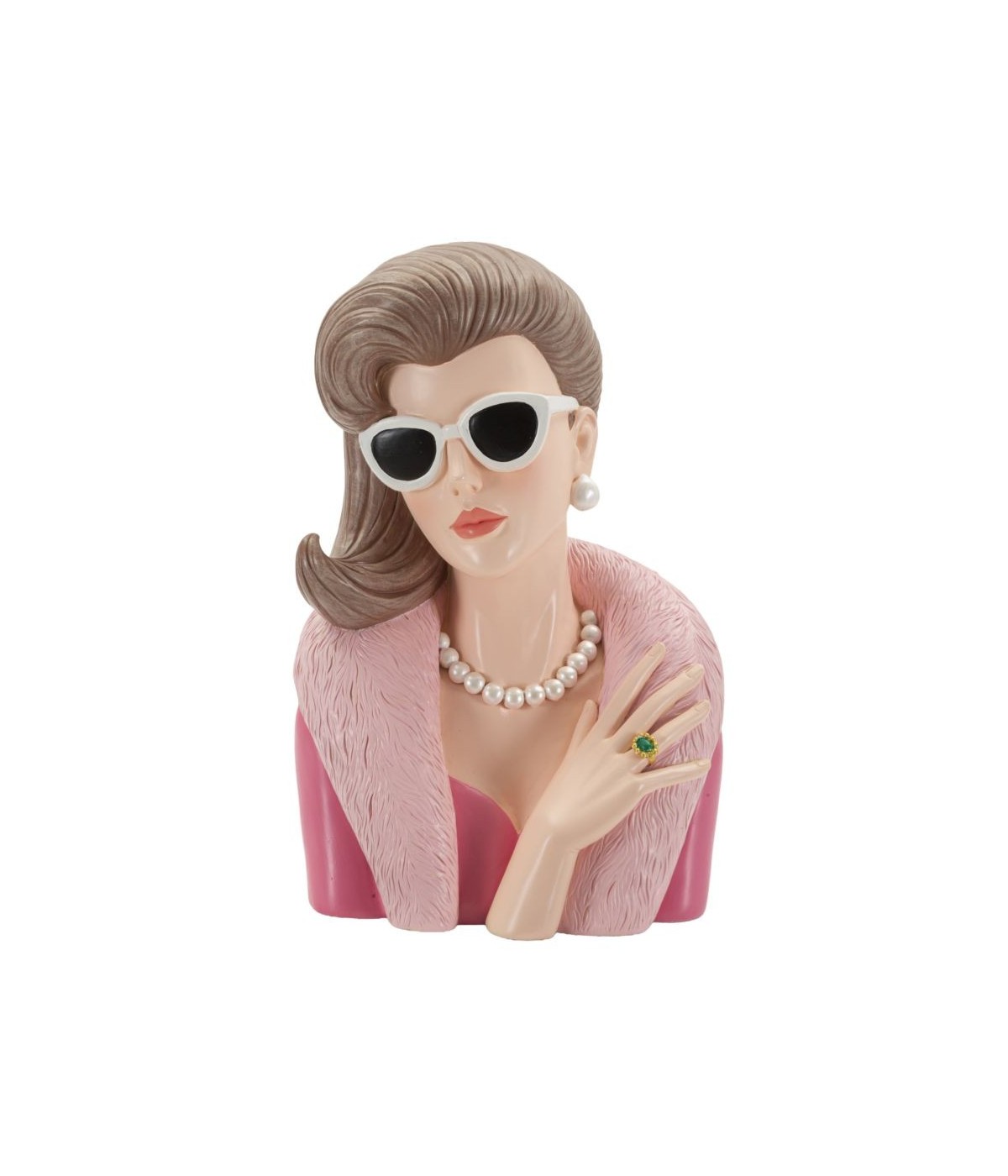 Audace e seducente, la Donna Paris conquista con il suo stile da diva d’altri tempi. Occhiali bianchi, perle e pelliccia rosa la rendono un'icona di lusso e femminilità intramontabile.
