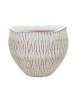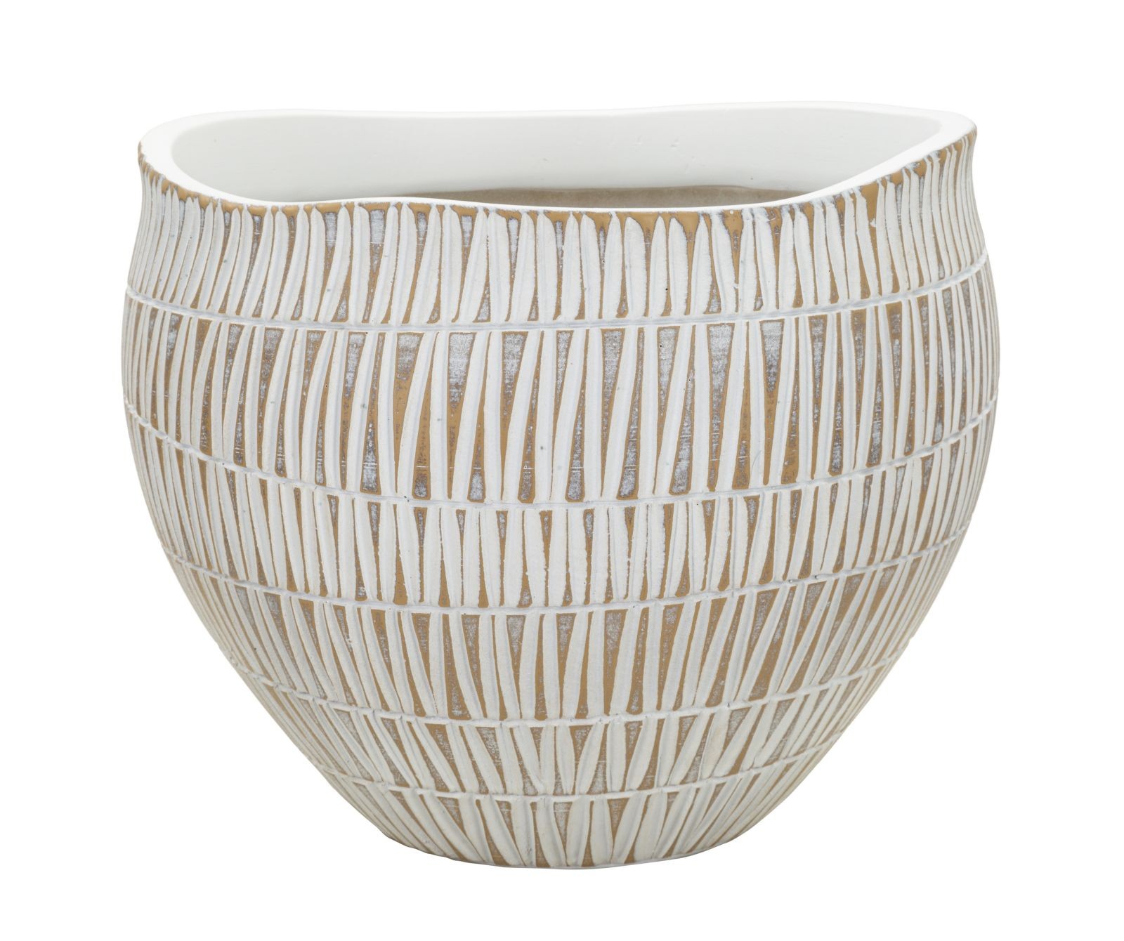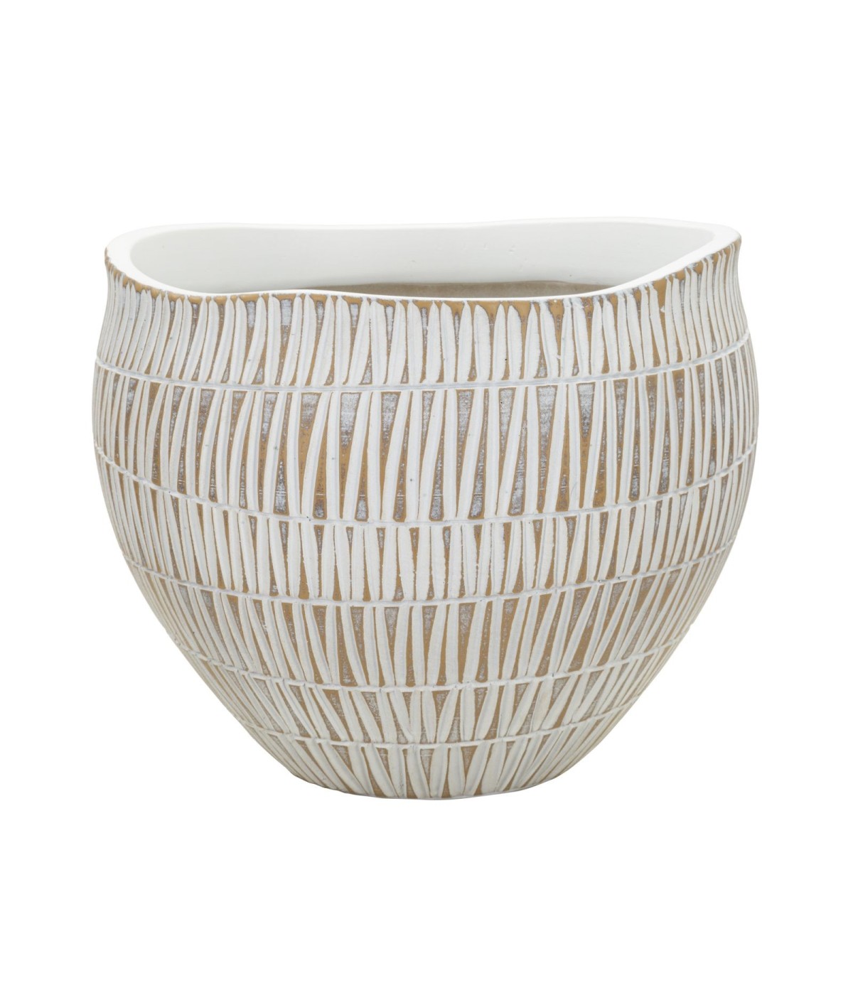 Cachepot in resina elegantemente decorato da intagli geometrici e lineari.