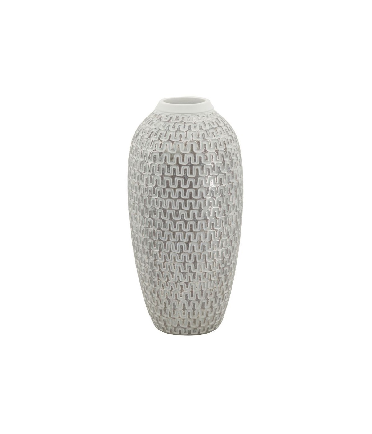 Vaso in resina elegantemente decorato con intagli che richiamano i castelli medievali.