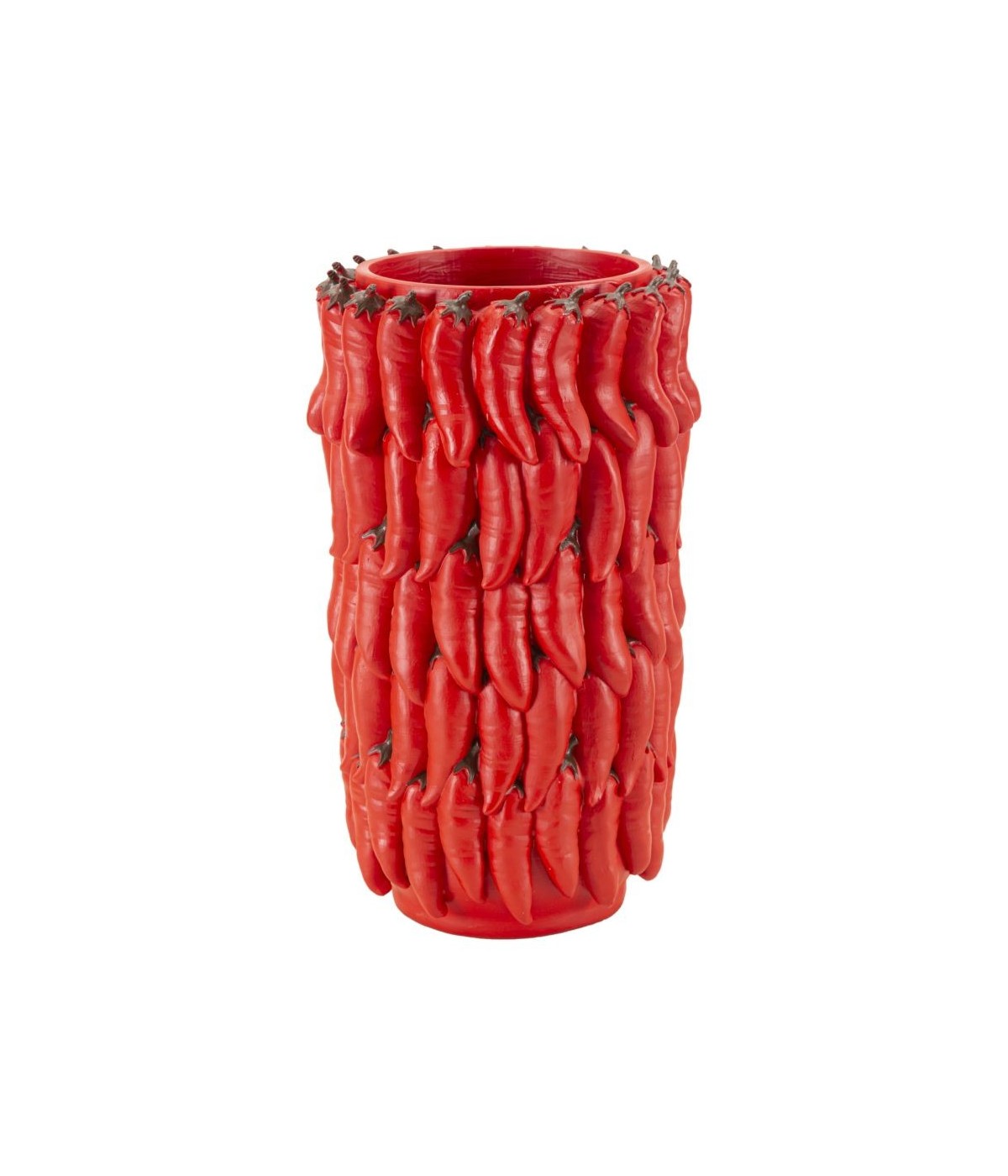 Vaso in resina composto da un insieme di simpatici peperoncini colorati.