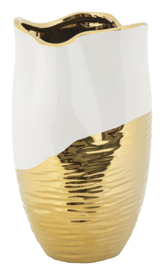 Vaso in ceramica dal design morbido e sinuoso con eleganti finiture dorate.