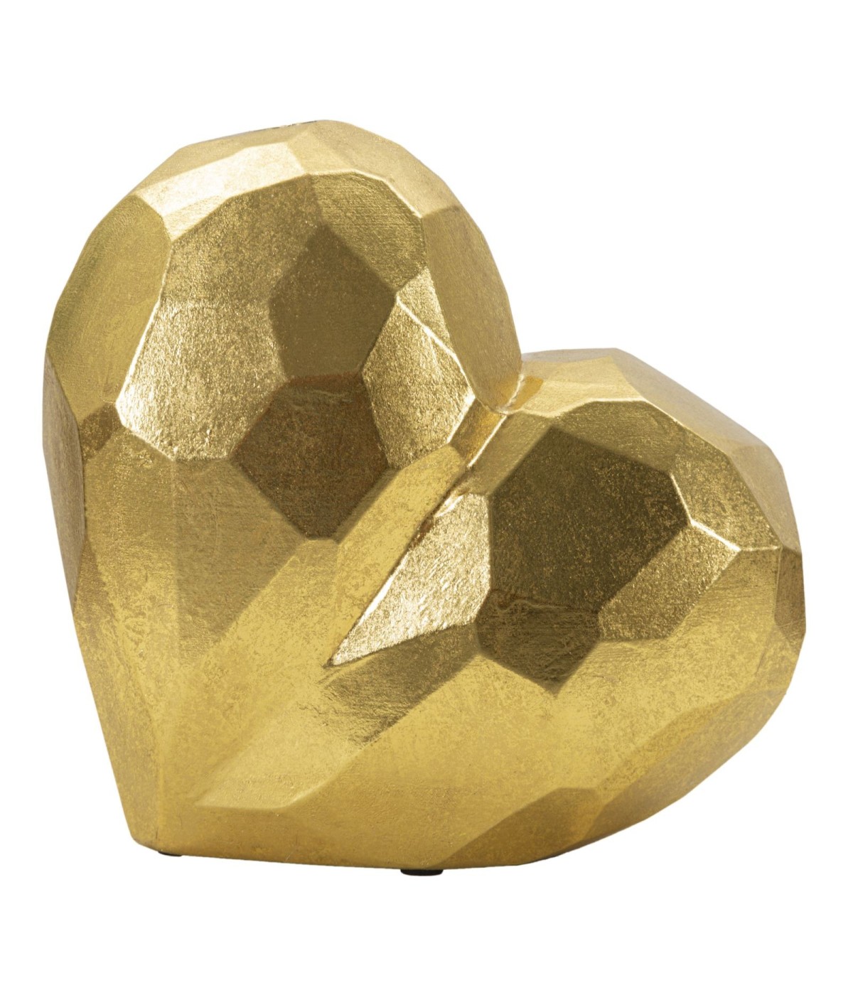 Elegante vaso in resina dorata a forma di cuore dal design squadrato che richiama il cubismo.