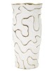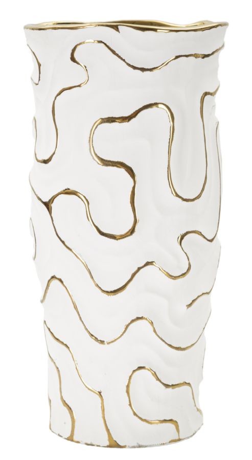 Vaso in ceramica bianca con eleganti linee dorate, ideale per un tocco raffinato e contemporaneo nell'arredamento.