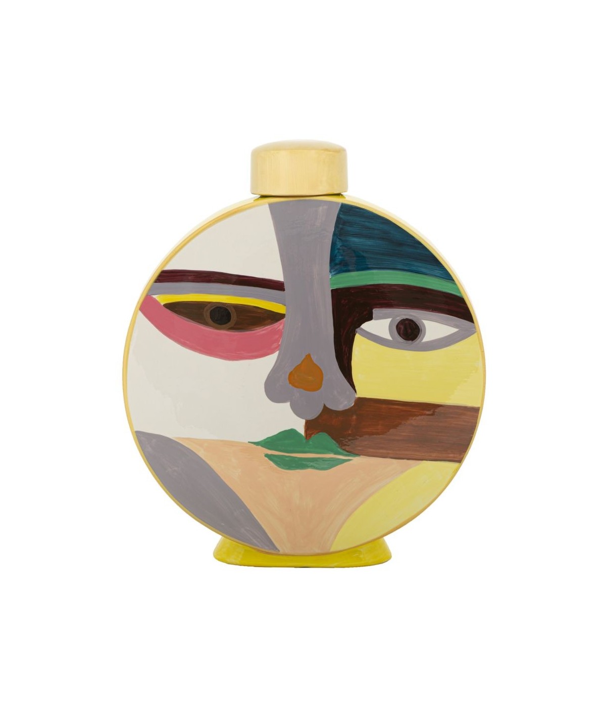 Un vaso rotondo dal design originale e ricercato, ispirato all’arte cubista. Le sue linee morbide si combinano a colori vivaci e dettagli grafici, creando un complemento decorativo perfetto per chi ama arredare in modo creativo e fuori dagli schemi.
