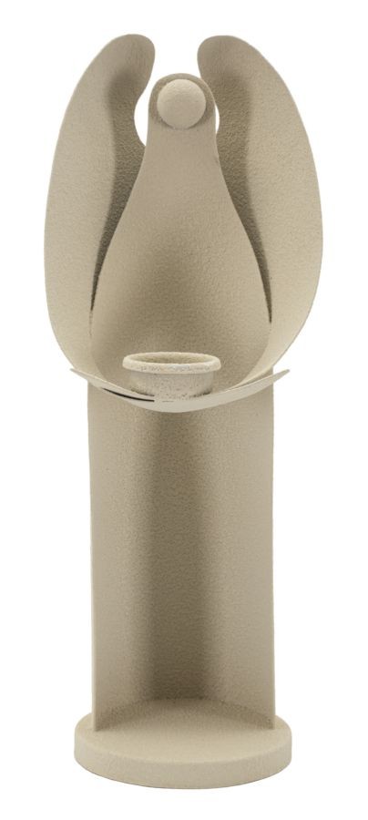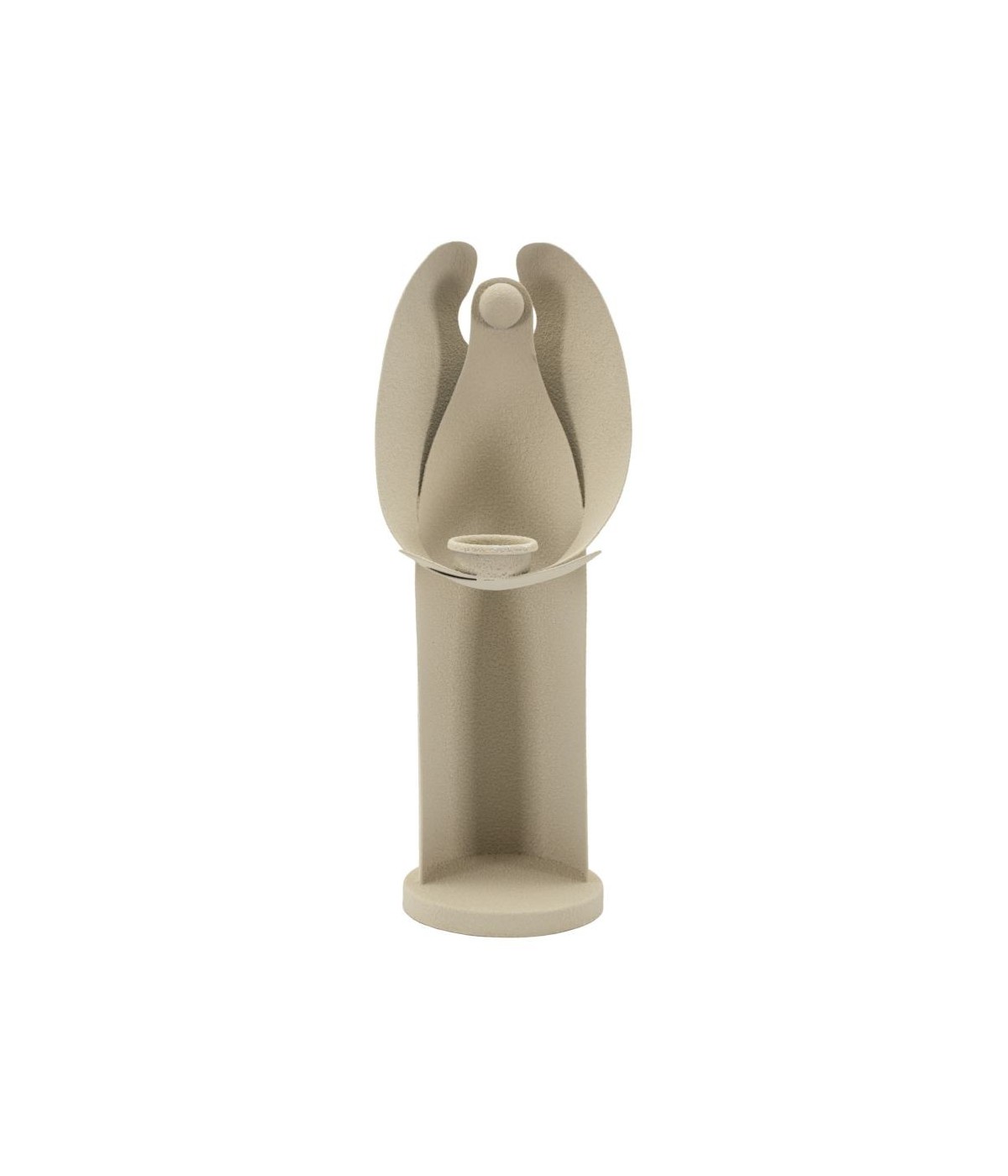 Un angelo stilizzato che abbraccia la fiamma: questo portacandela trasmette un senso di protezione e spiritualità, perfetto per creare atmosfere serene e contemplative.