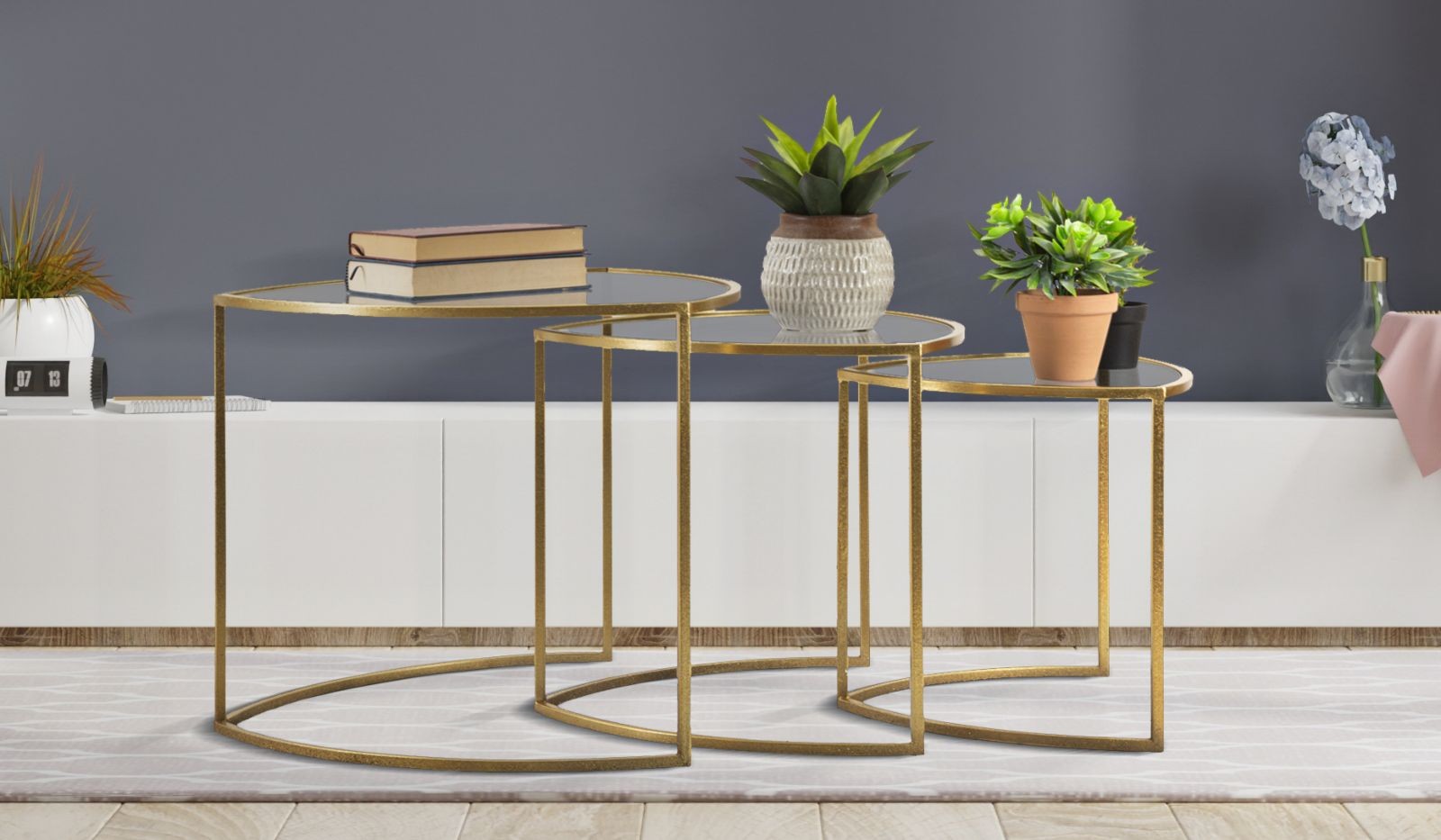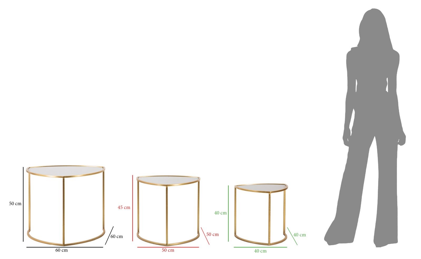 Tavolinetti da caffe' triangle set 3 pz cm 60x50-50x45-40x40