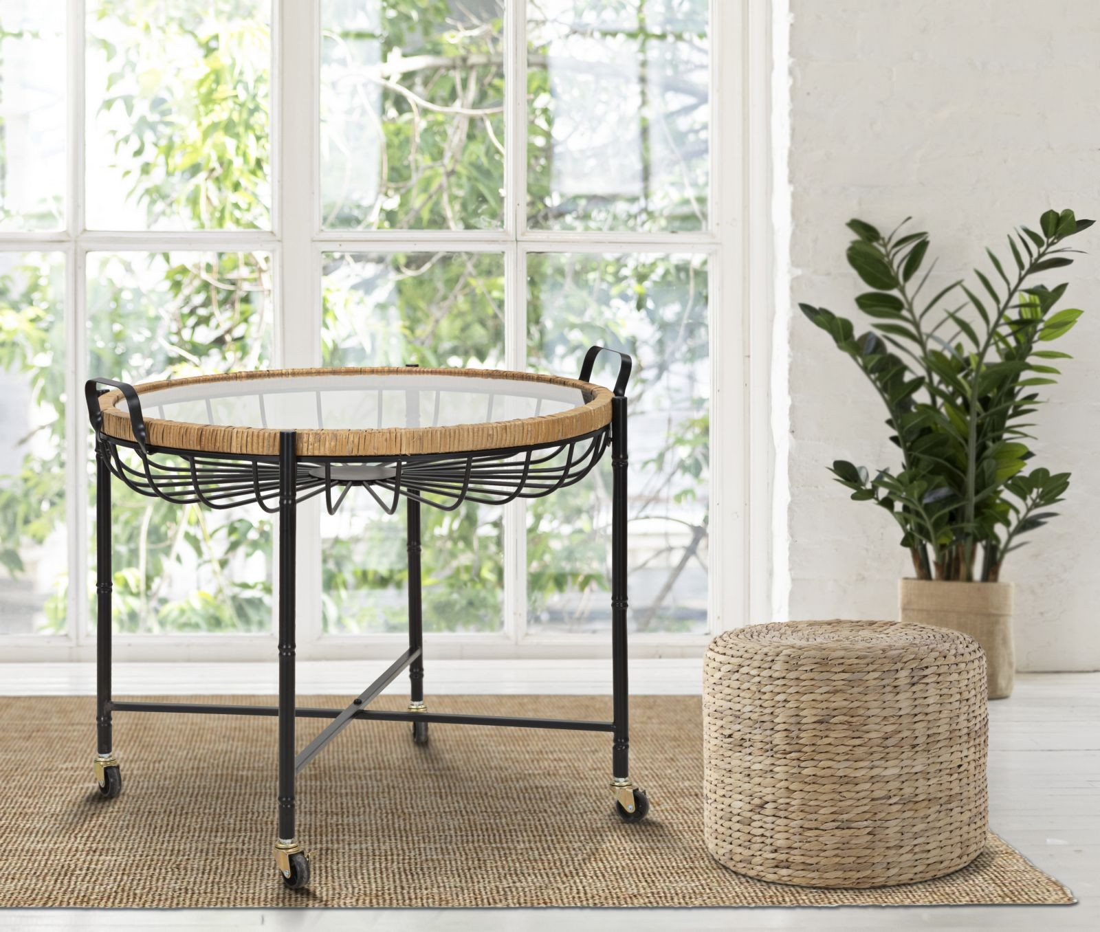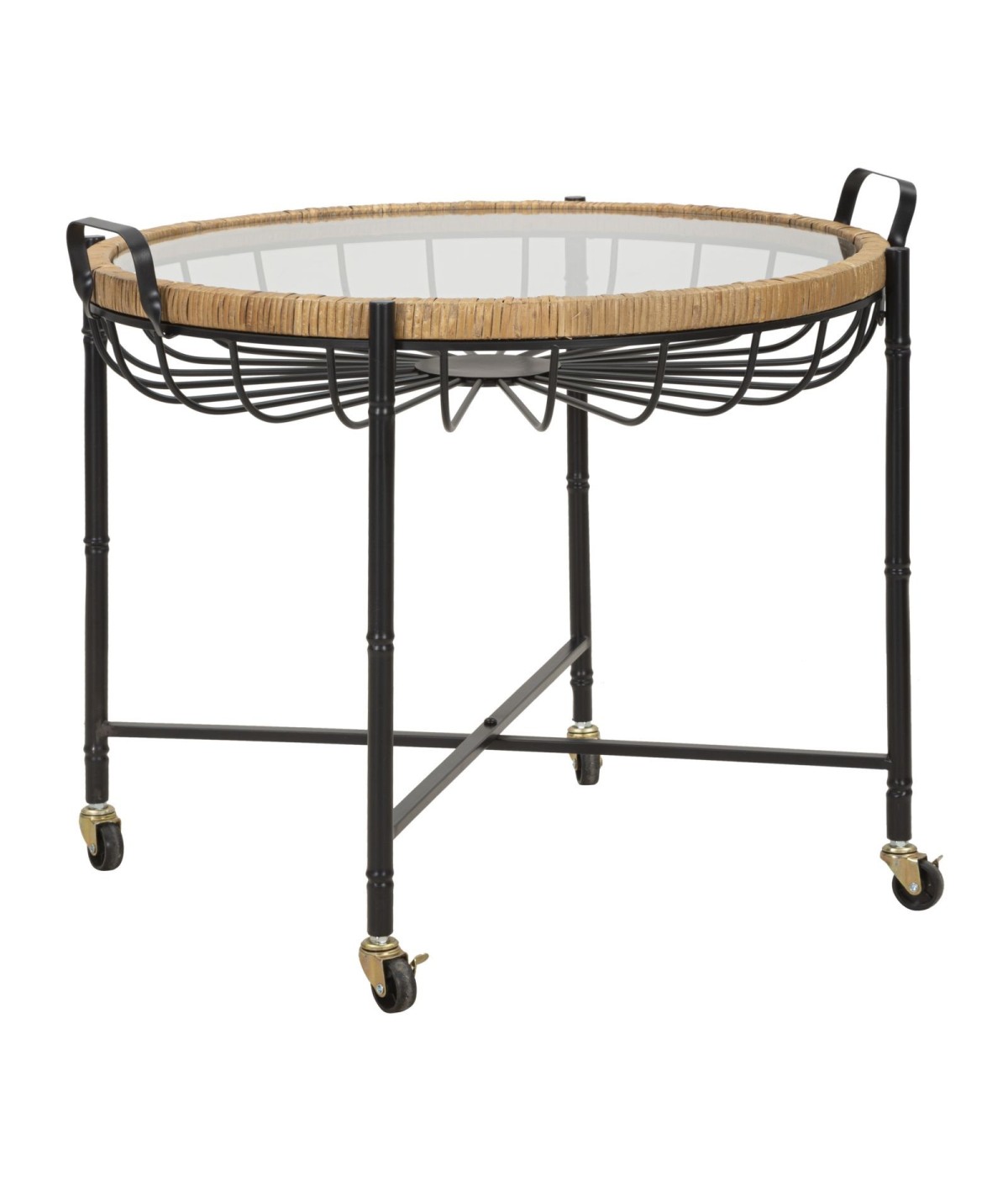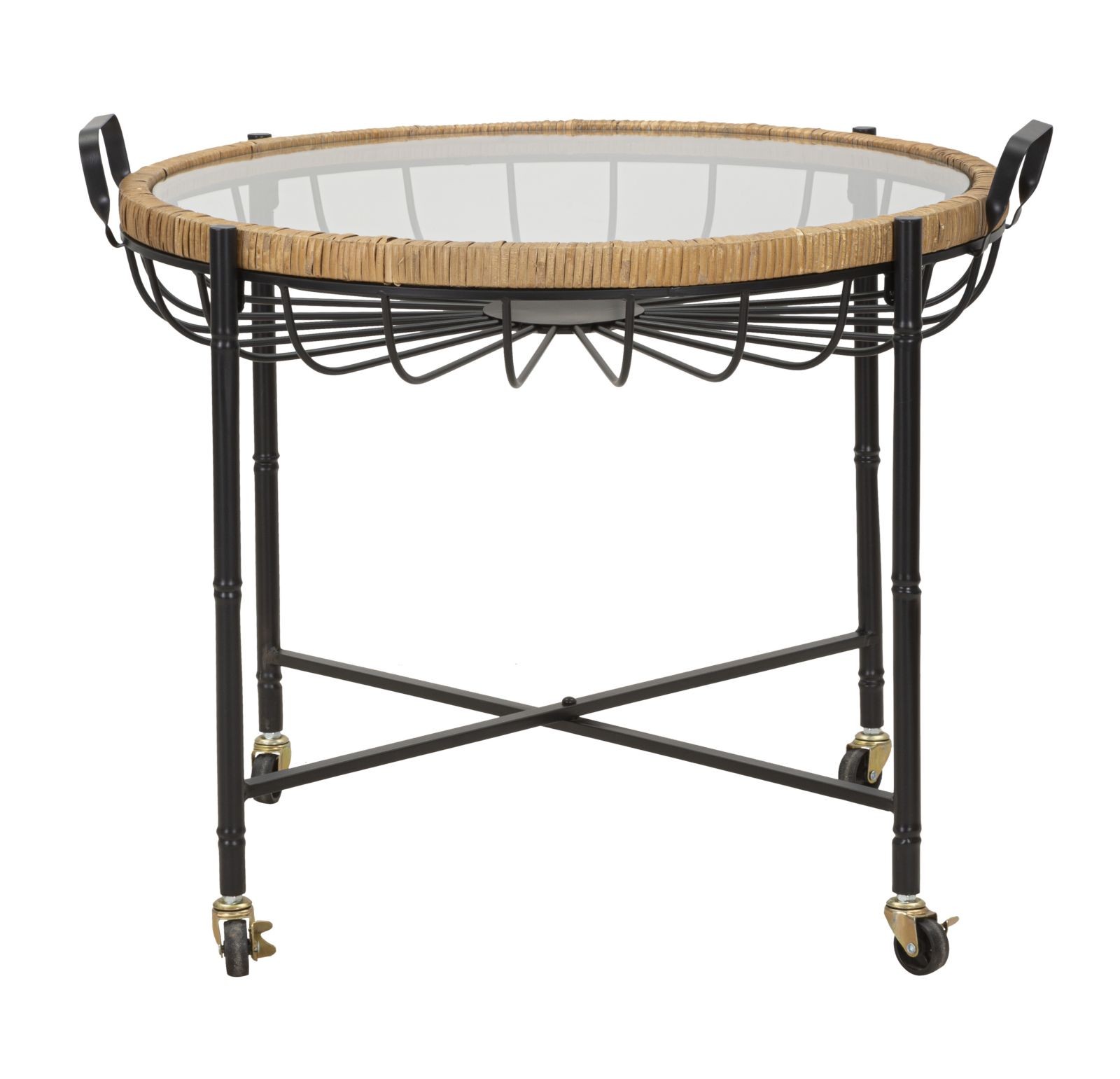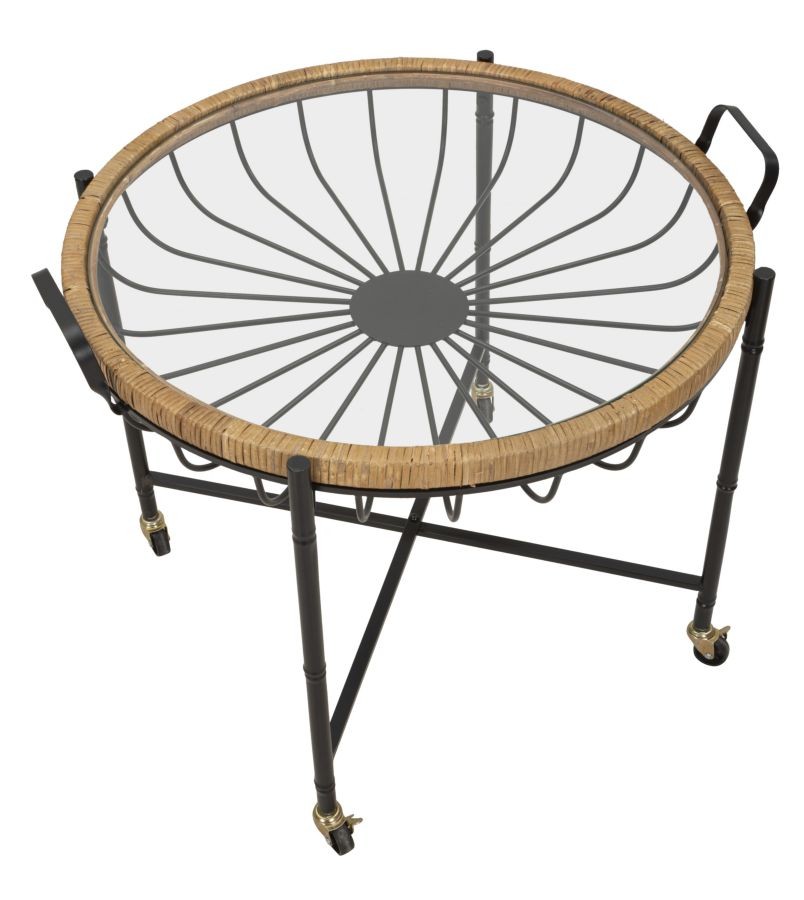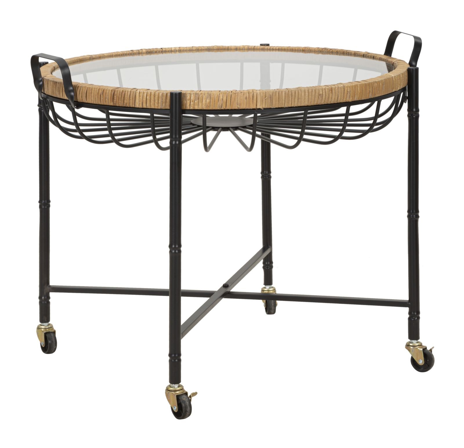 Tavolinetto cebu c/vetro e ruote cm 70,5x65x57