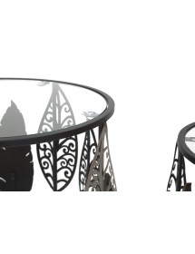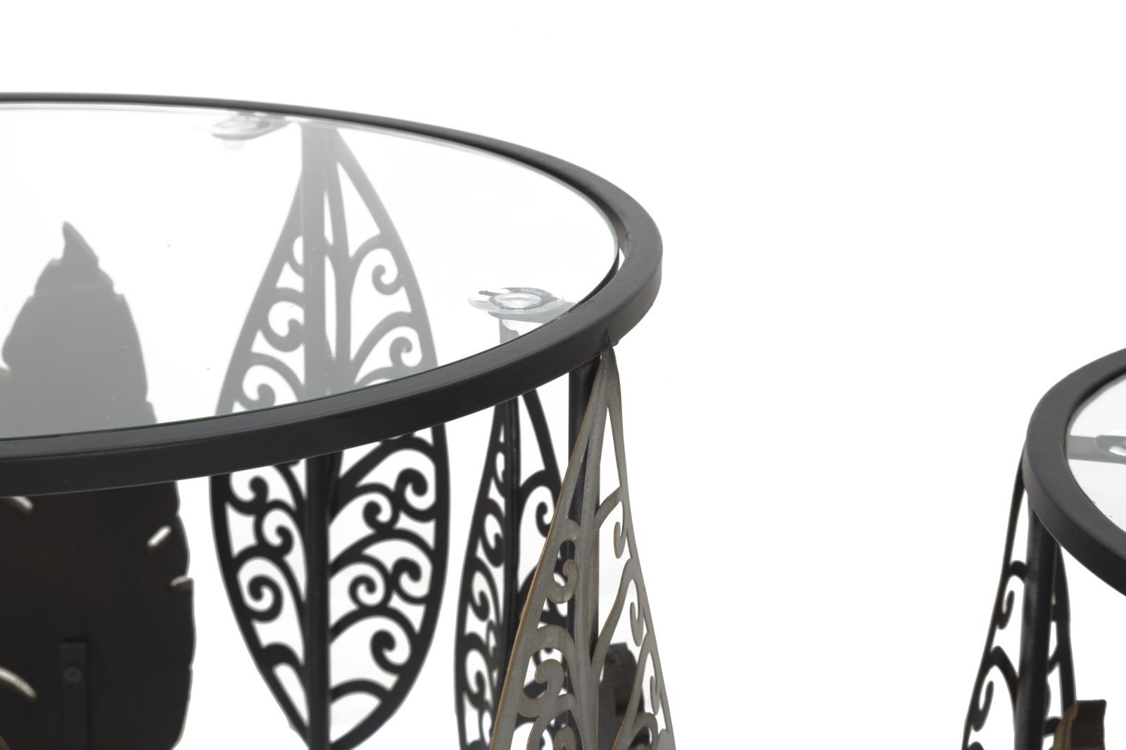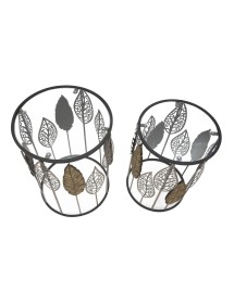Tavolinetti in ferro e legno foglie coppia cm 38x55-33x50