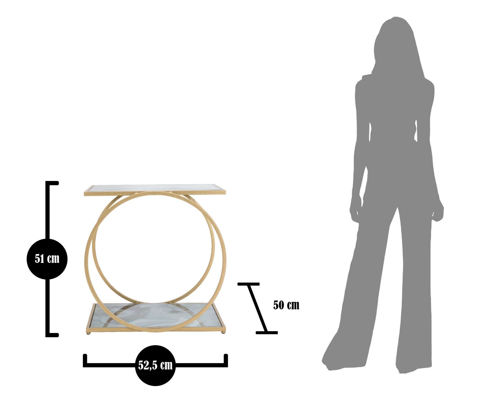 Tavolinetto glam 2 level cm 52,5x50x51