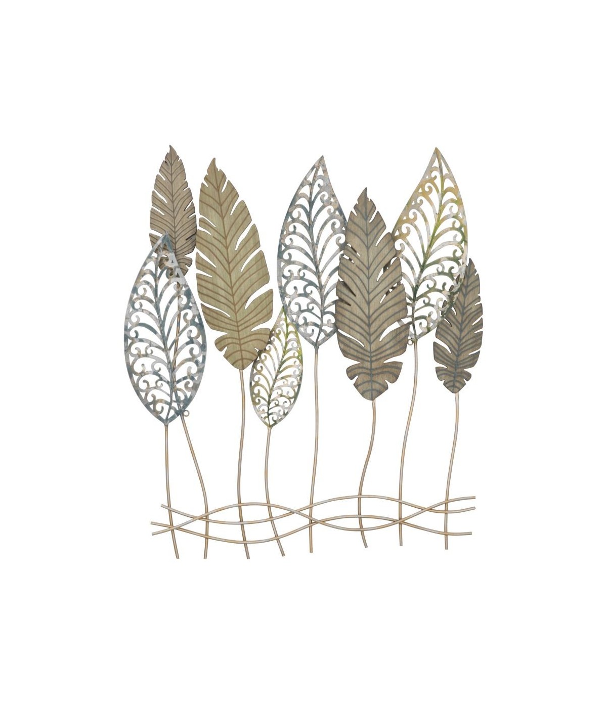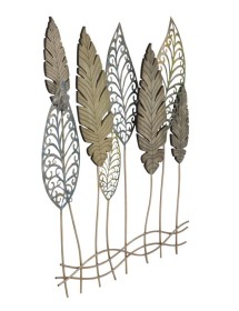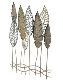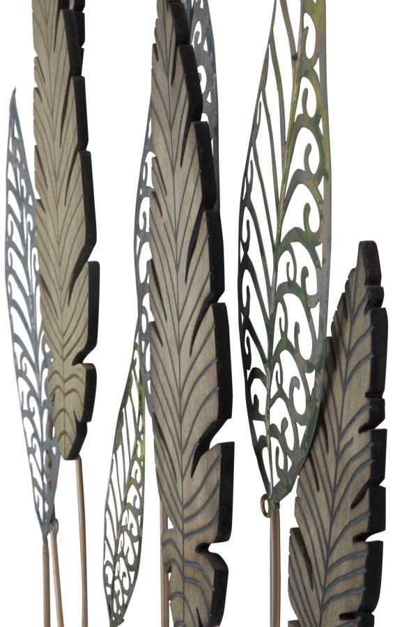 Pannello in ferro e legno foglie -c- cm 75x2,5x87