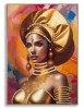 Dipinto su tela con intelaiatura in legno raffigurante una donna in abiti tradizionali e con turbante. Completo di cornice in metallo dorato.