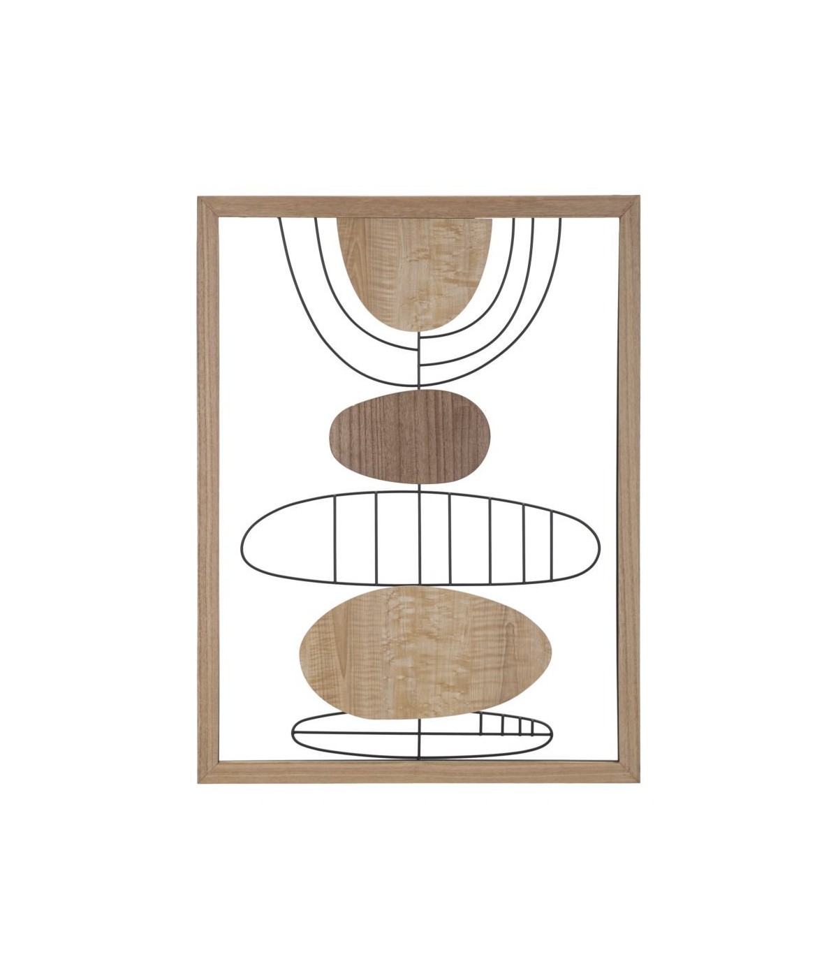Pannello decorativo 3D da parete in metallo e legno composto da figure astratte. I toni caldi si accostano perfettamente ad ogni tipologia di arredo.