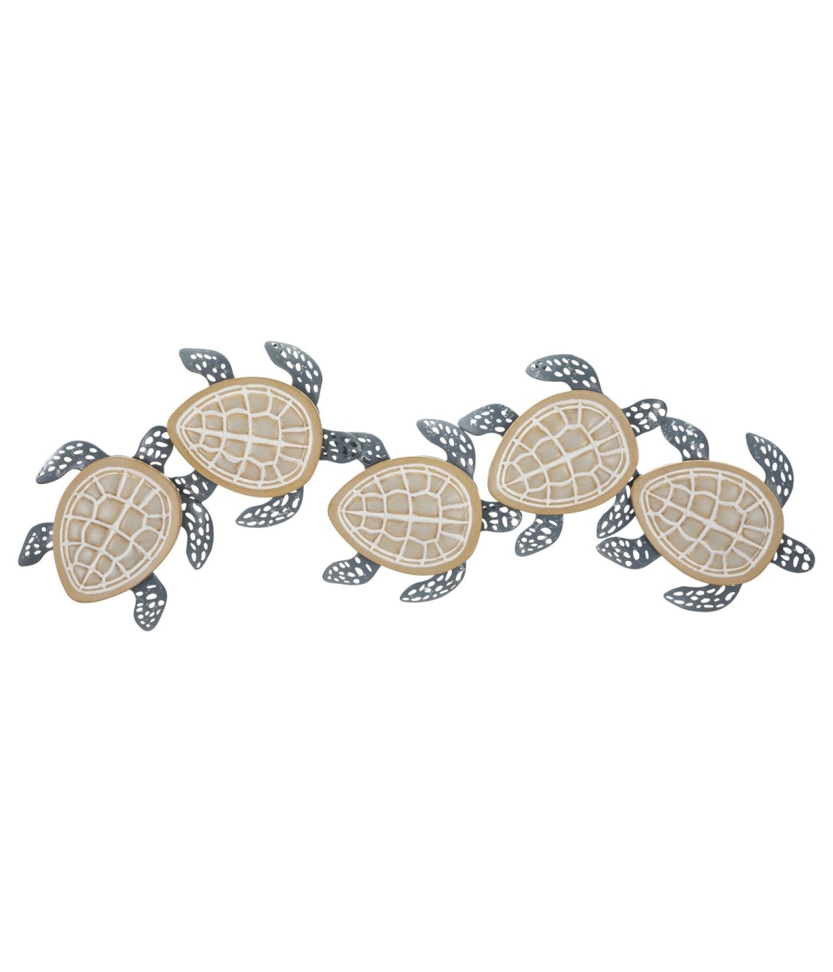 Pannello decorativo 3D da parete in metallo e legno raffigurante delle tartarughe marine che nuotano.
