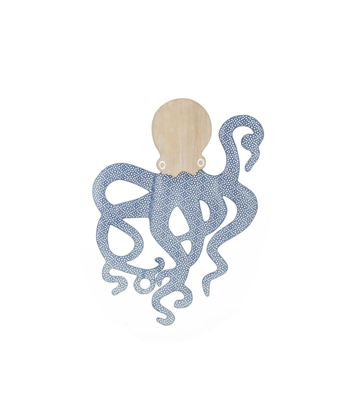Pannello decorativo 3D da parete in metallo e legno raffigurante un simpatico polipo.