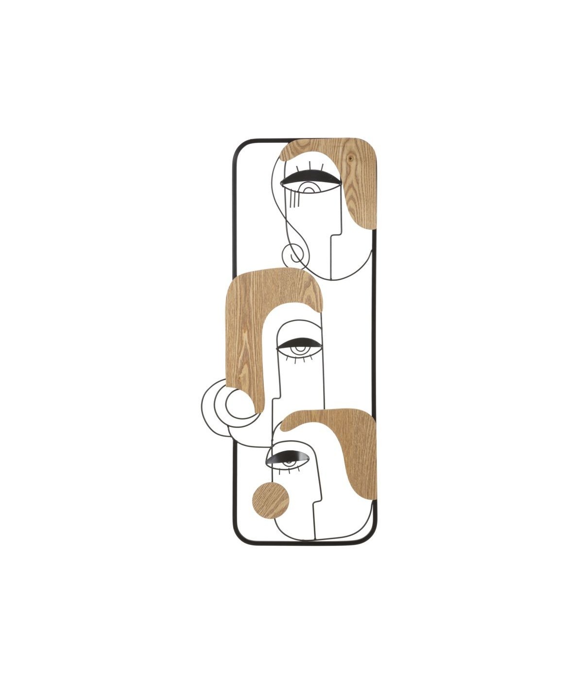 Pannello decorativo 3D da parete in metallo e legno raffigurante dei volti dai tratti che richiamano l'arte cubista.