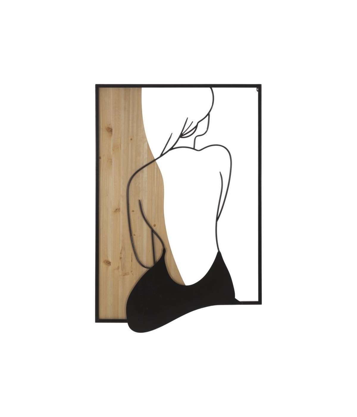 Pannello decorativo 3D da parete in metallo e legno raffigurante una donna seduta di spalle.