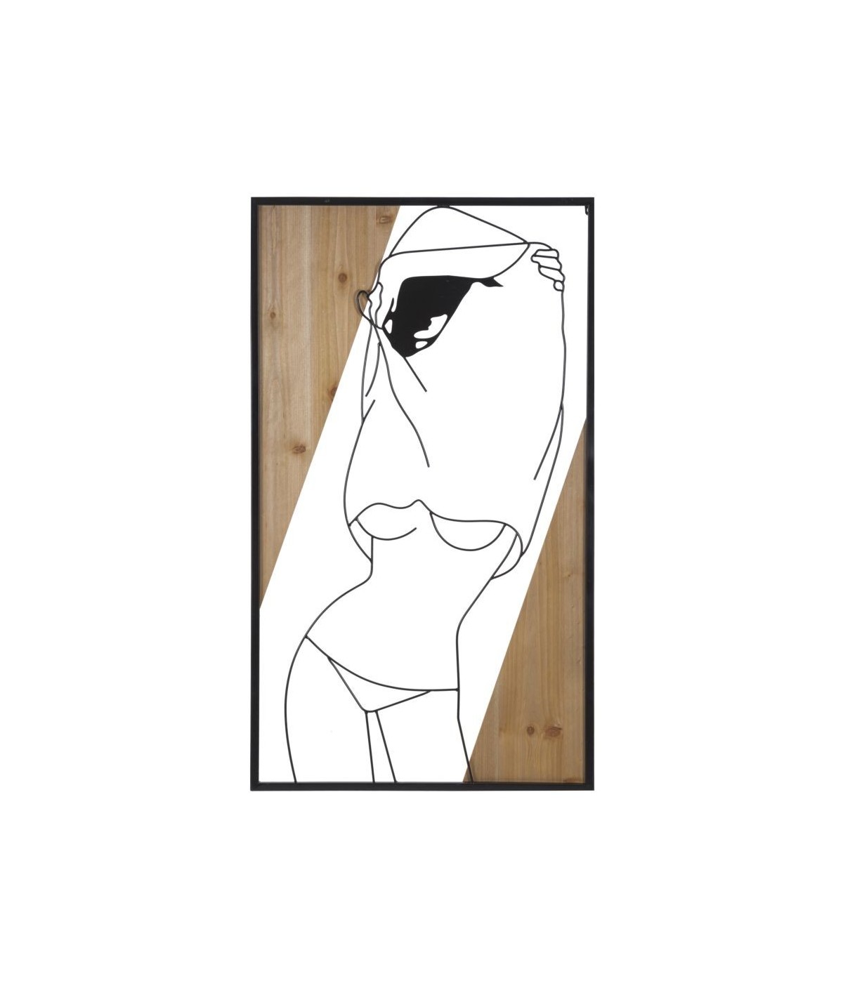 Pannello decorativo 3D da parete in metallo e legno raffigurante una ragazza che si spoglia.
