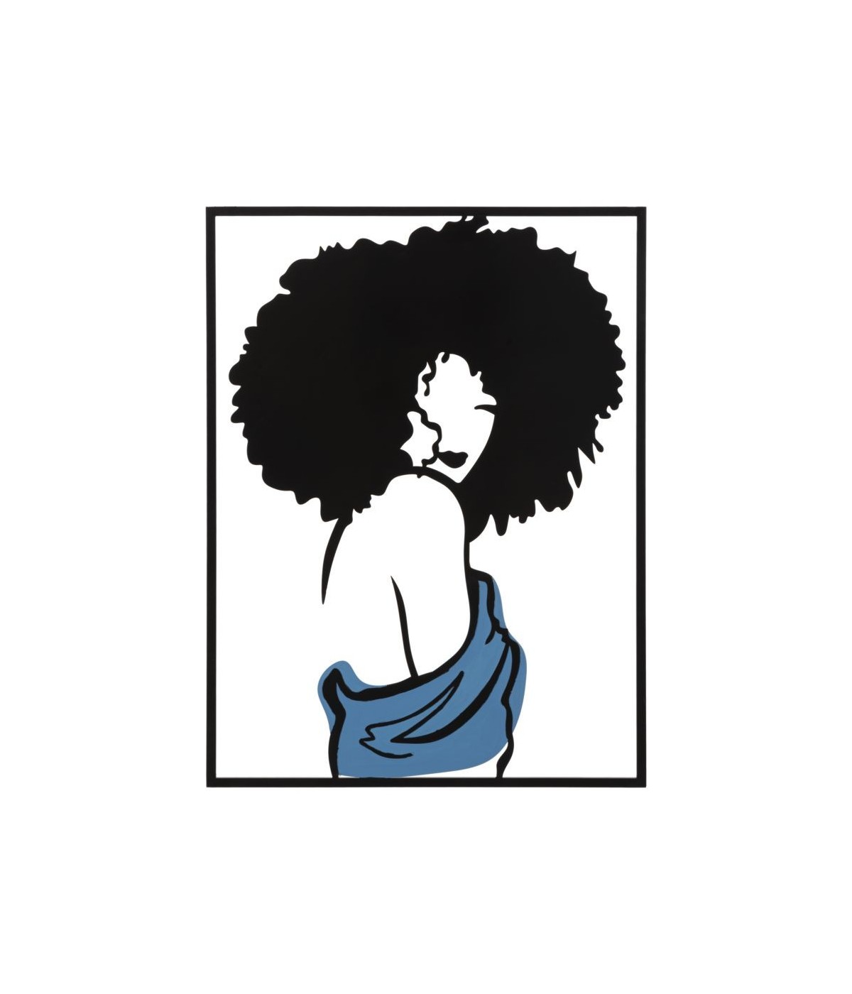 Pannello decorativo 3D da parete in metallo raffigurante una donna con un elegante vestito dai colori accesi e sgargianti.