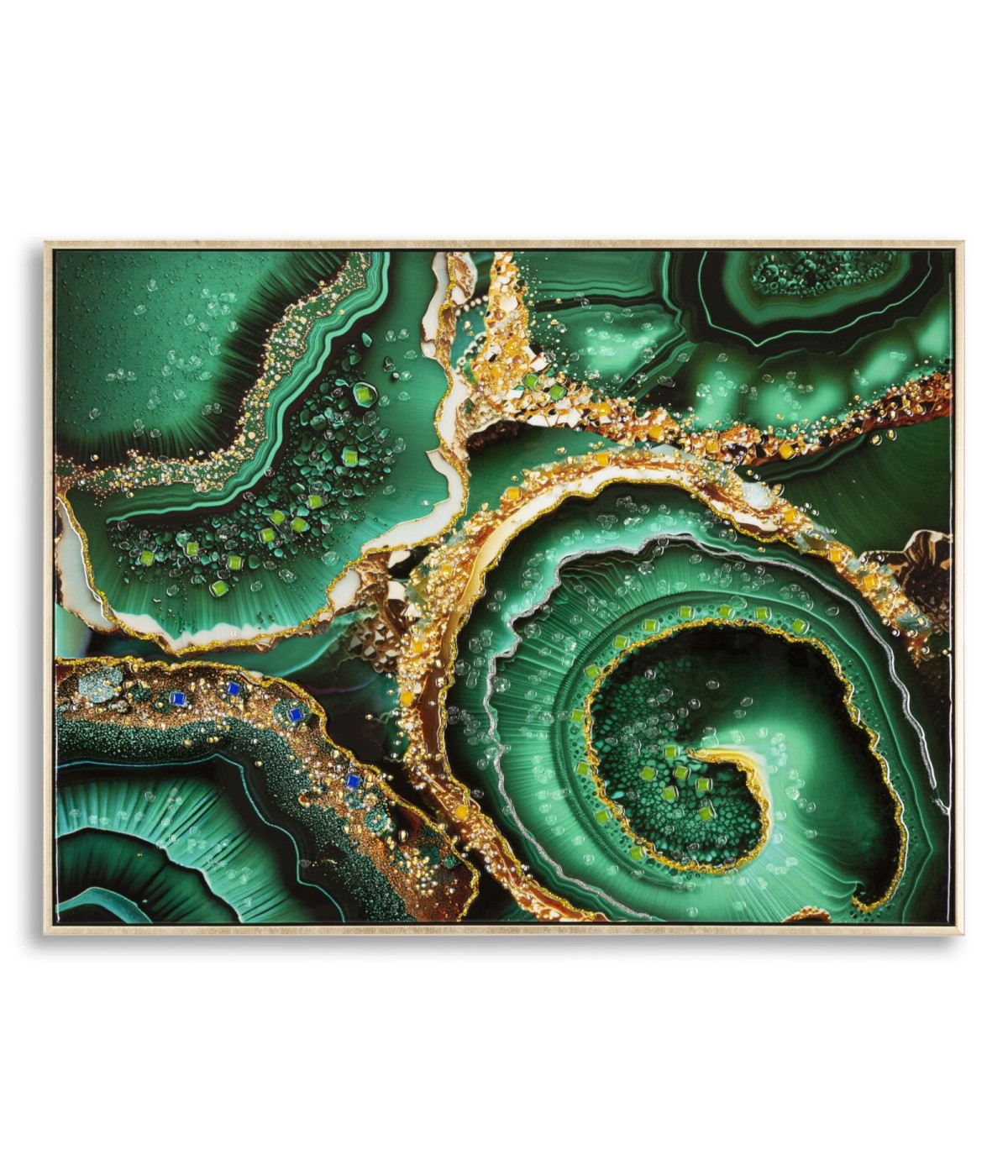 Dipinto su tela completo di telaio in legno e cornice in metallo oro, che ricorda una preziosa pietra, perfetto per arricchire qualsiasi ambiente con un tocco di eleganza naturale. Con applicazioni in rilievo.
