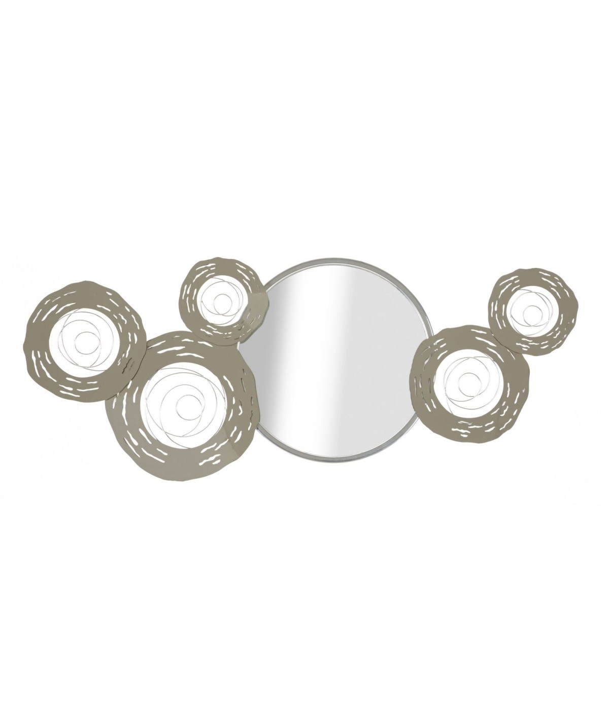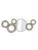 Pannello decorativo 3D da parete in metallo argento con cerchi che sembrano giocare con la luce, lo specchio aggiunge un tocco di modernità all'ambiente.