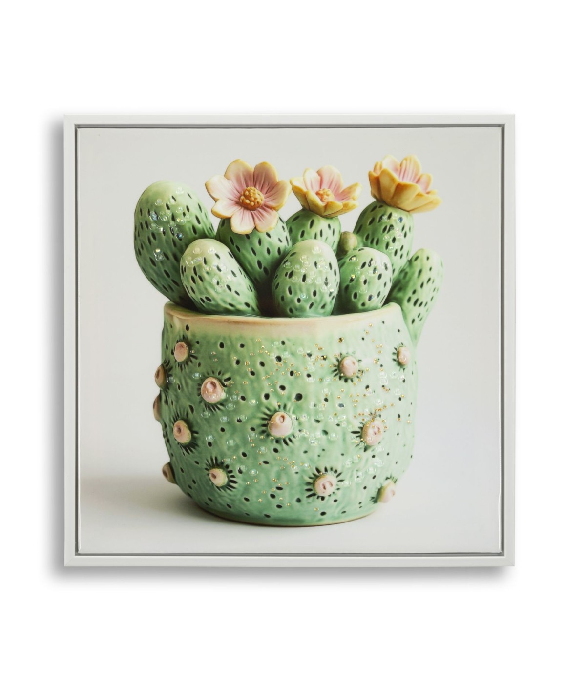 Stampa su tela laccata c/cornice vasetto cactus -a- cm 40x2,8x40