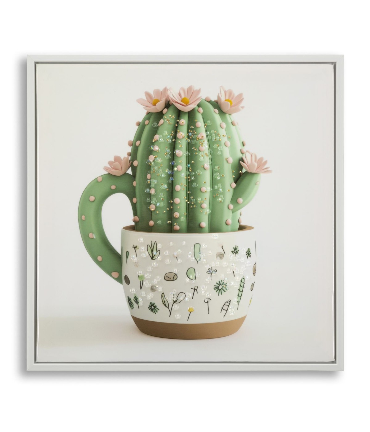Stampa su tela laccata c/cornice vasetto cactus -b- cm 40x2,8x40
