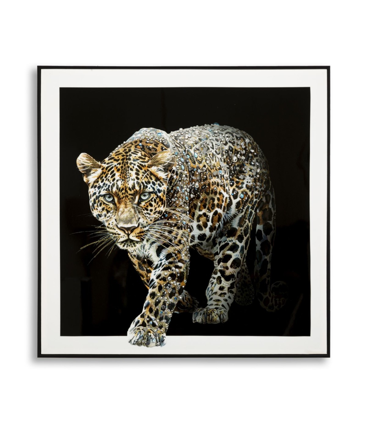 Dipinto su tela laccato giaguaro c/cornice -b- cm 82x4x82