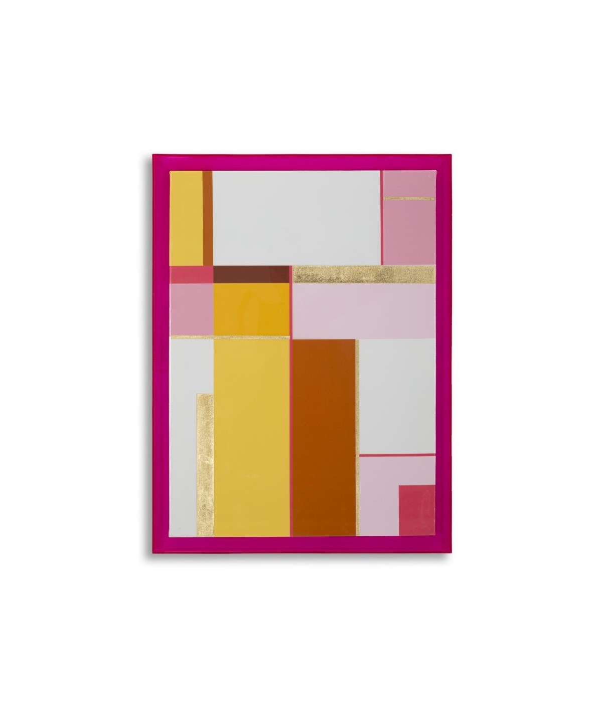 Linee decise, giochi cromatici e dettagli dorati rendono questa stampa un vero protagonista dell’ambiente. Perfetta per chi ama decorazioni moderne e di forte impatto visivo.