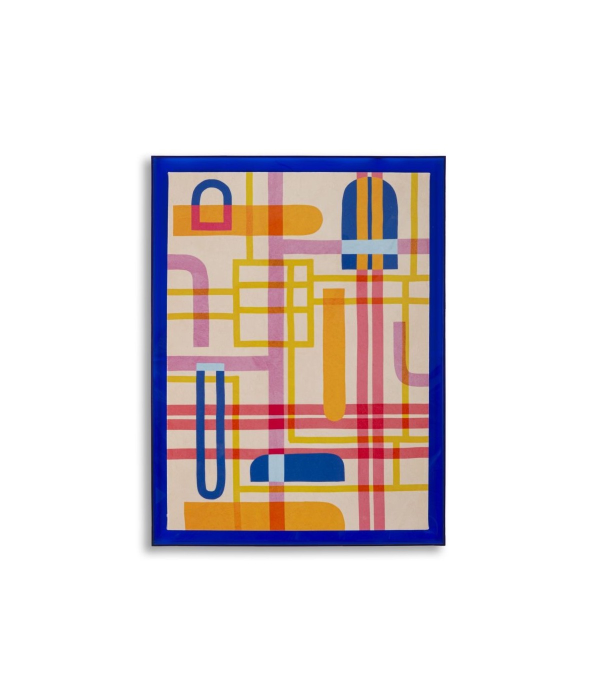 Una stampa astratta e moderna, dove linee intrecciate e vivaci combinazioni di colori creano un effetto dinamico e accattivante. Perfetta per chi desidera dare personalità e movimento a pareti spoglie, in ambienti giovani, creativi o dal gusto contemporaneo.