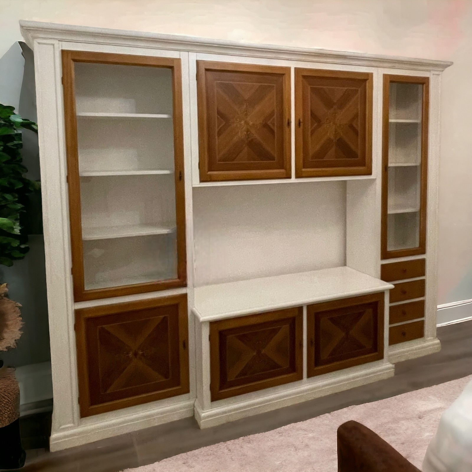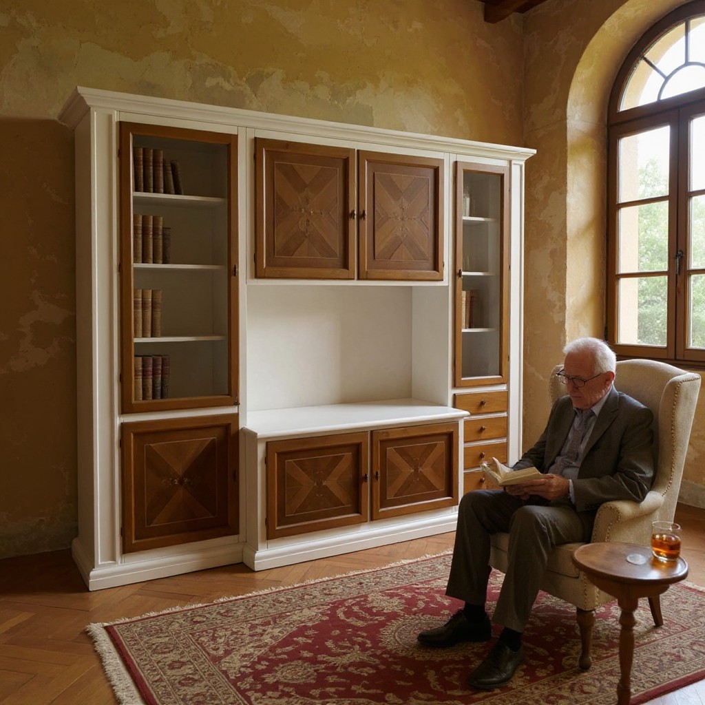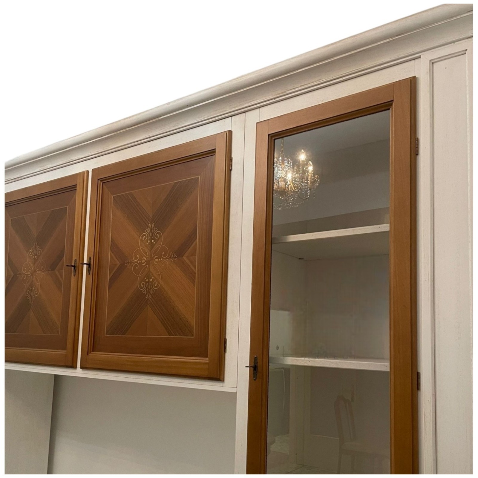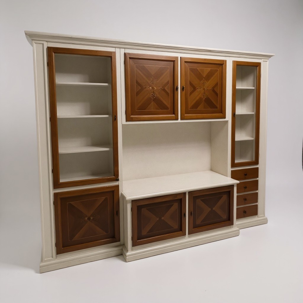 Parete attrezzata shabby legno bianca noce bassano con intarsi 298x56x237 (343F)