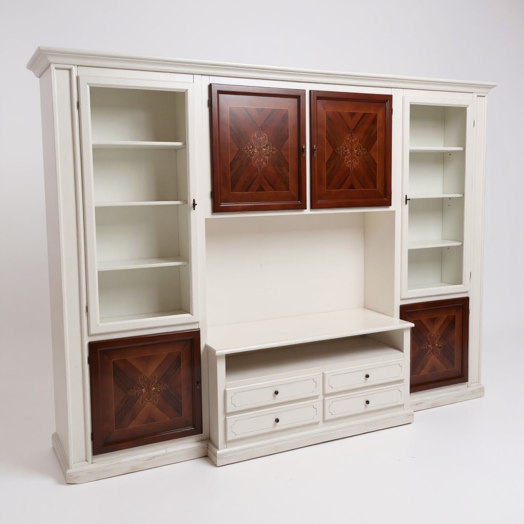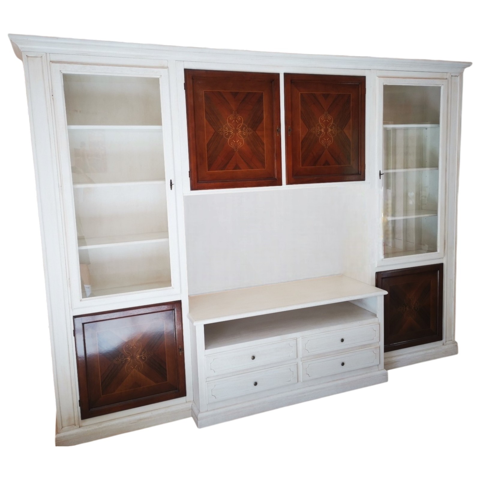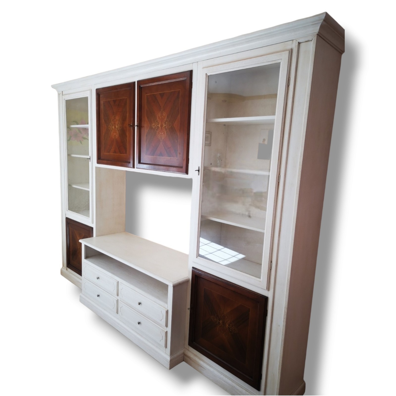 Parete attrezzata shabby legno bianca noce con intarsi 322x56x237 (344)
