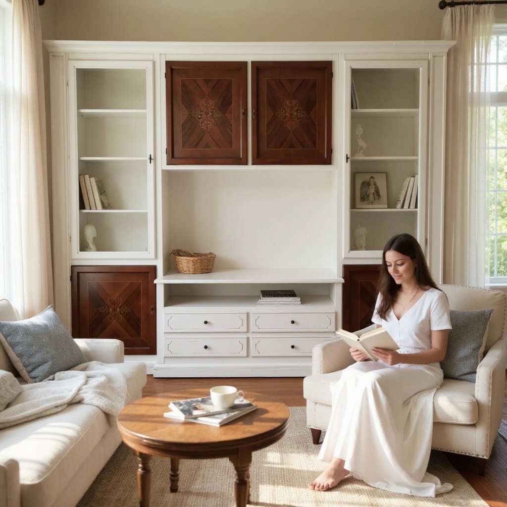 Parete Attrezzata Classica Legno Shabby Bianco Argento SX3.030,30 € 4.329,00 € -30%