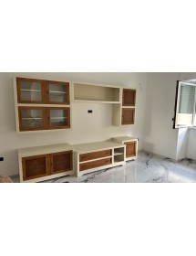 INTERPARETE IN LEGNO/PORTA TV/LIBRERIA/SOGGIORNO LACCATO AVORIO + NOCE GRANO L.310 P.65