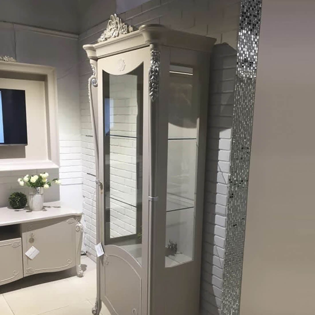 Parete attrezzata in legno shabby chic rilievo bianco opaco